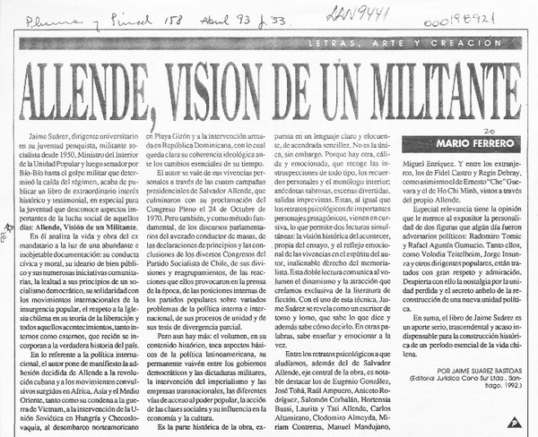 Allende, visión de un militante [artículo] Mario Ferrero.