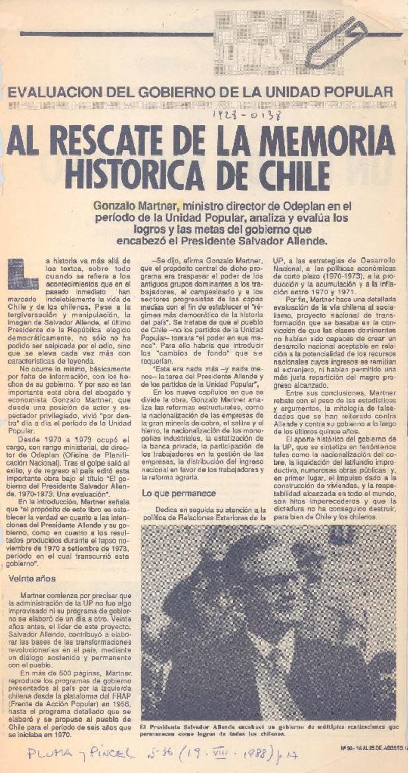 MARTNER, GONZALO - GOBIERNO DEL PRESIDENTE SALVADOR ALLENDE 1970-1973, UNA EVALUACION, EL