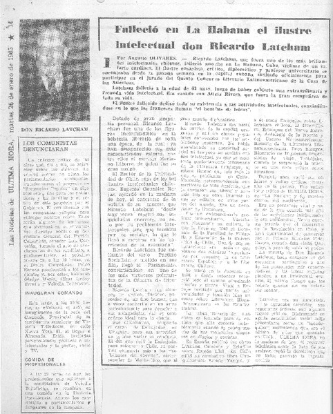 Falleció en La Habana el ilustre intelectual don Ricardo Latcham [artículo]