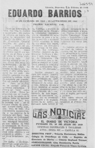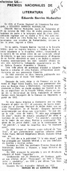 Eduardo Barrios, Premio Nacional de Literatura  [artículo].