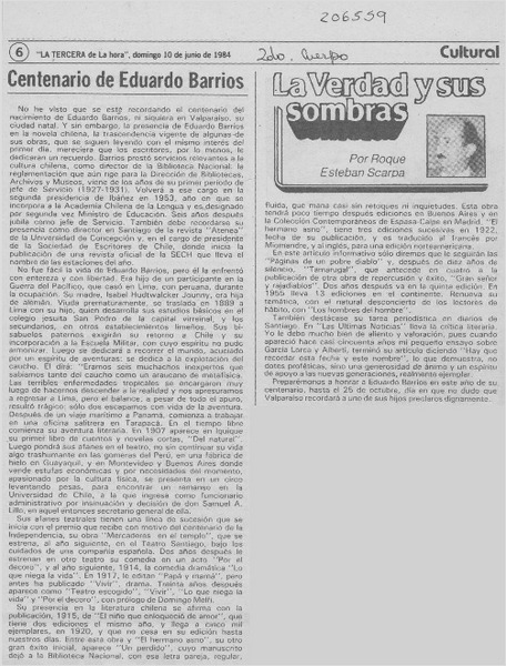 Centenario de Eduardo Barrios [artículo] Roque Esteban Scarpa.