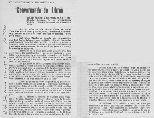 Aproximaciones a un "gran señor" [artículo] Cristián Barros.