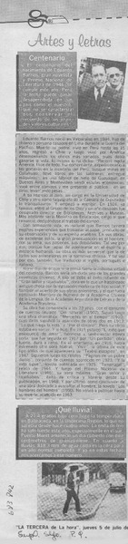 Nació hace 100 años en "Quebrada del Almendro" [artículo] Eugenio Rodríguez.