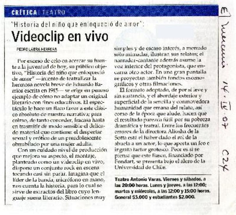 Videoclip en vivo [artículo] Pedro Labra Herrera.