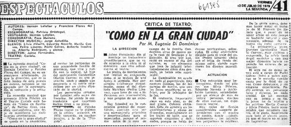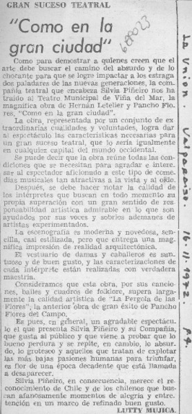 Como en la gran ciudad" [artículo] Lutty Mujica.