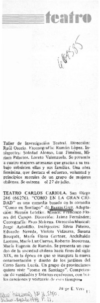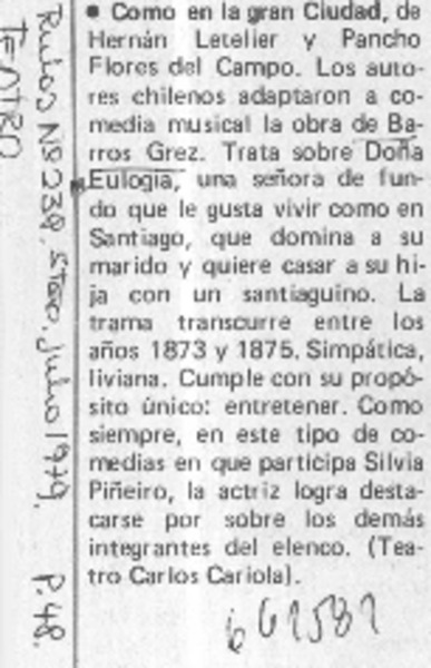 Como en la gran ciudad" obra de Hernán Letelier. [artículo]