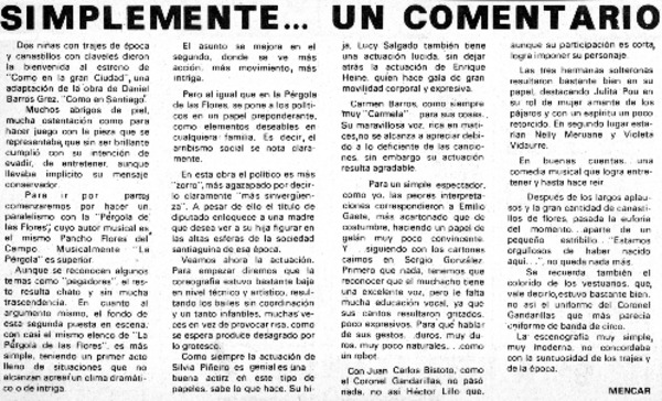 Como en la gran ciudad" nueva comedia musical que puede ser otra "Pérgola". [artículo]