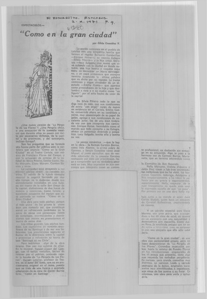Como en la gran ciudad" [artículo] Gilda González Gilda.