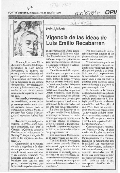 Vigencia de las ideas de Luis Emilio Recabarren [artículo] Iván Ljubetic.