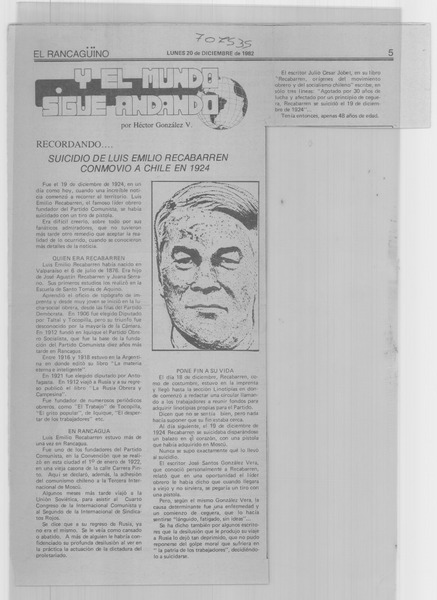 El suicidio de Recabarren [artículo] Héctor González Valenzuela.