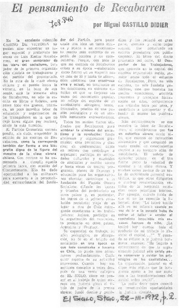 El pensamiento de Recabarren [artículo] Miguel Castillo Didier.
