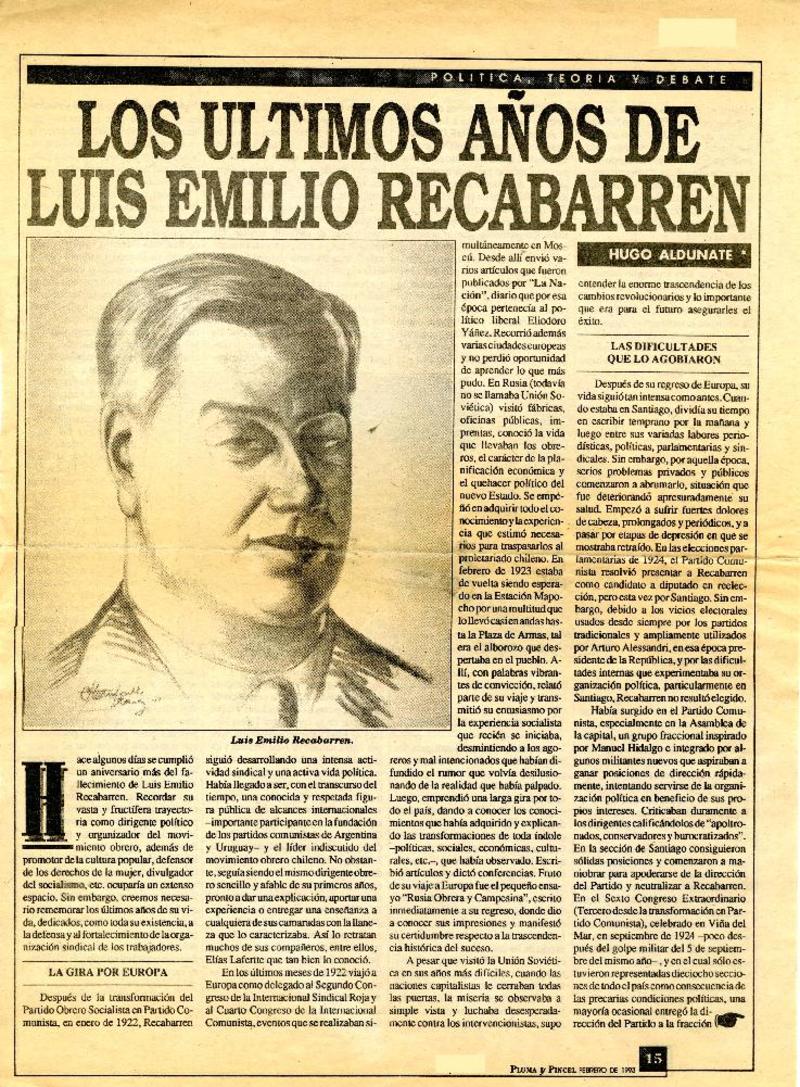 Los últimos años de Luis Emilio Recabarren [artículo] Hugo Aldunate.