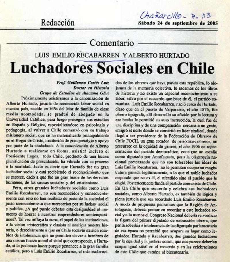 Luis Emilio Recabarren, imagen presente [artículo] Sergio Martínez.