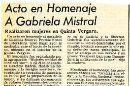 Acto en homenaje a Gabriela Mistral [artículo] / El Mercurio (Diario : Valparaíso, Chile)-- abr. 7, 1986, p. 5. .