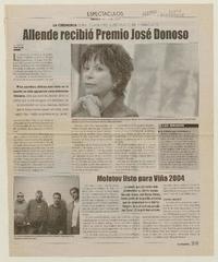 Allende recibió Premio José Donoso. [artículo]