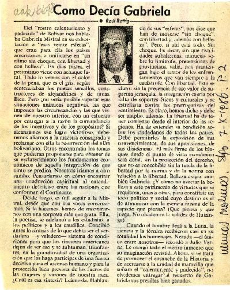 Como decía Gabriela [artículo] Raúl Rettig.