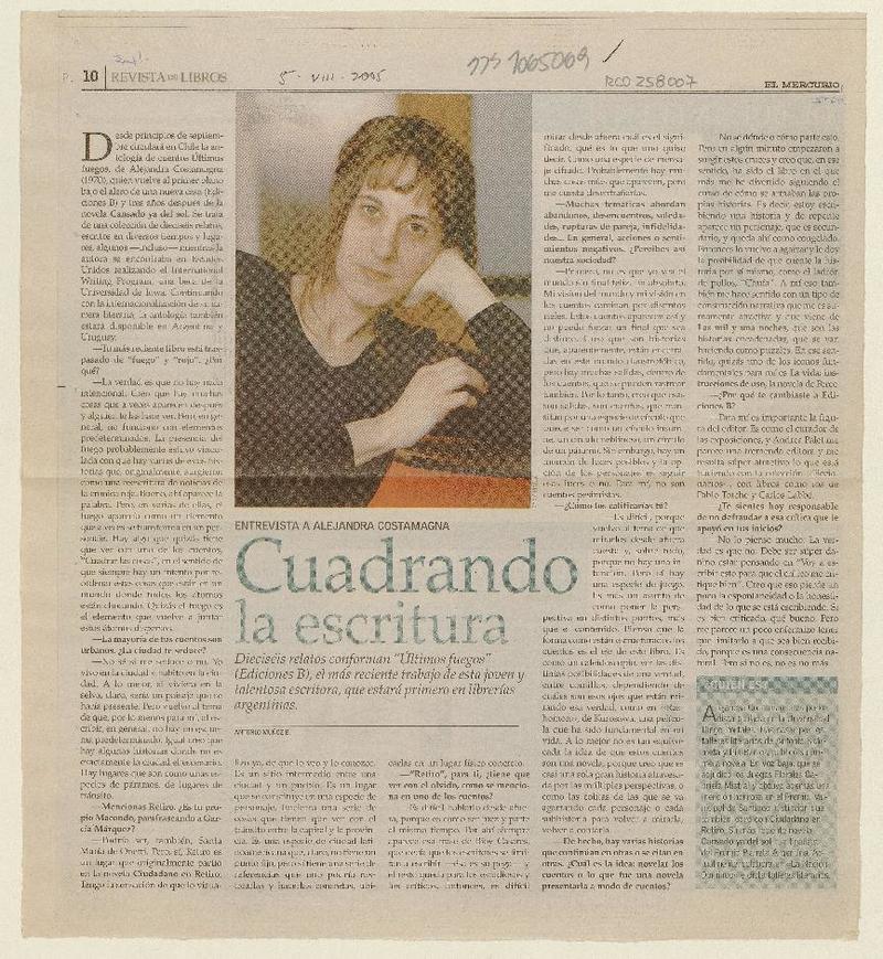 Materias: Entrevistas - Costamagna, Alejandra - Autoras chilenas