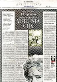 El esperado reconocimiento a Virginia Cox [artículo] / Pedro Pablo Guerrero. El Mercurio (Diario : Santiago, Chile)-- ene. 13, 2019, p. E10. (suplemento "Artes y Letras") .