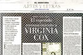 El esperado reconocimiento a Virginia Cox [artículo] Pedro Pablo Guerrero.