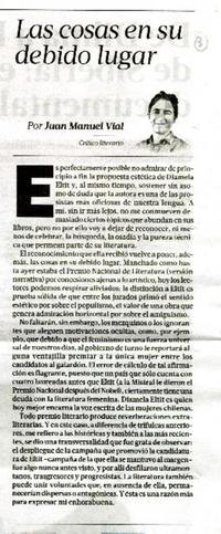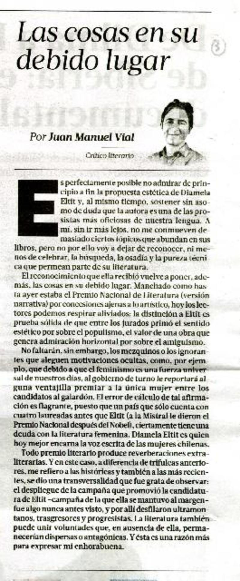 Las cosas en su debido lugar [artículo] Juan Manuel Vial.