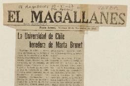La Universidad de Chile heredera de Marta Brunet. [artículo] El Magallanes (Punta Arenas, Chile)-- nov. 10, 1967. .