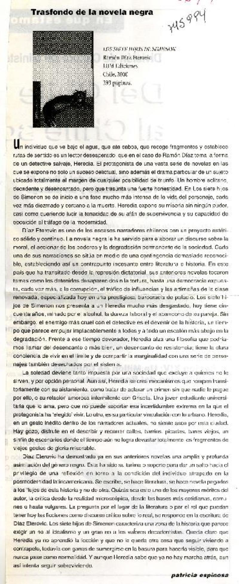 Trasfondo de la novela negra [artículo] / Patricia Espinosa. Rocinante (Revista : Santiago, Chile)-- no. 20 (jun. 2000) p. 18. .