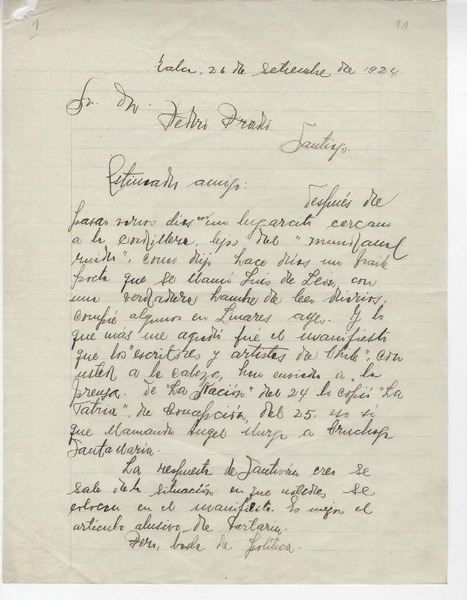 [Carta] 1924 sep. 26, Talca, Chile [a] Pedro Prado