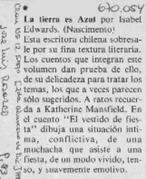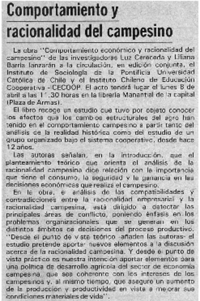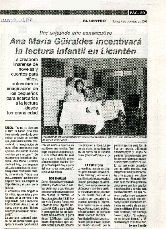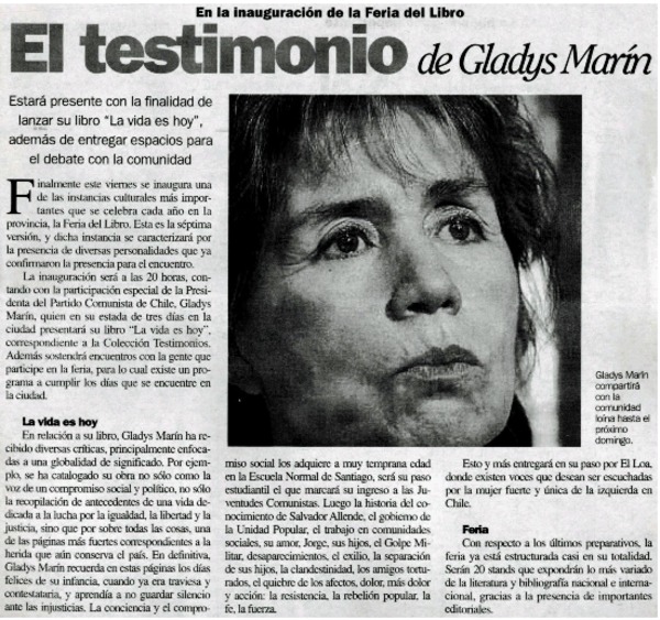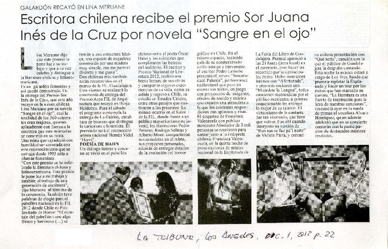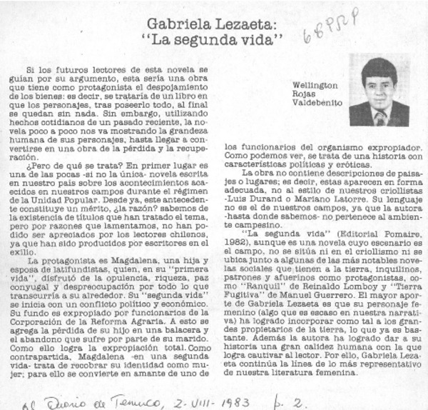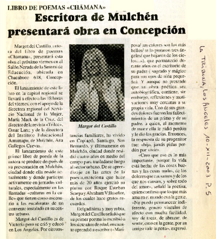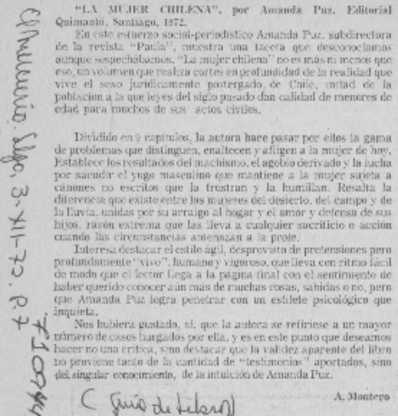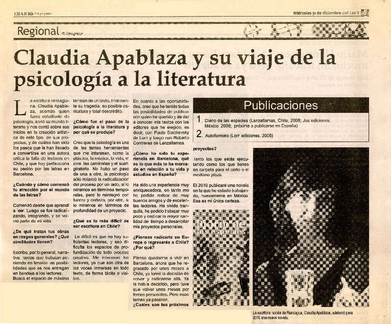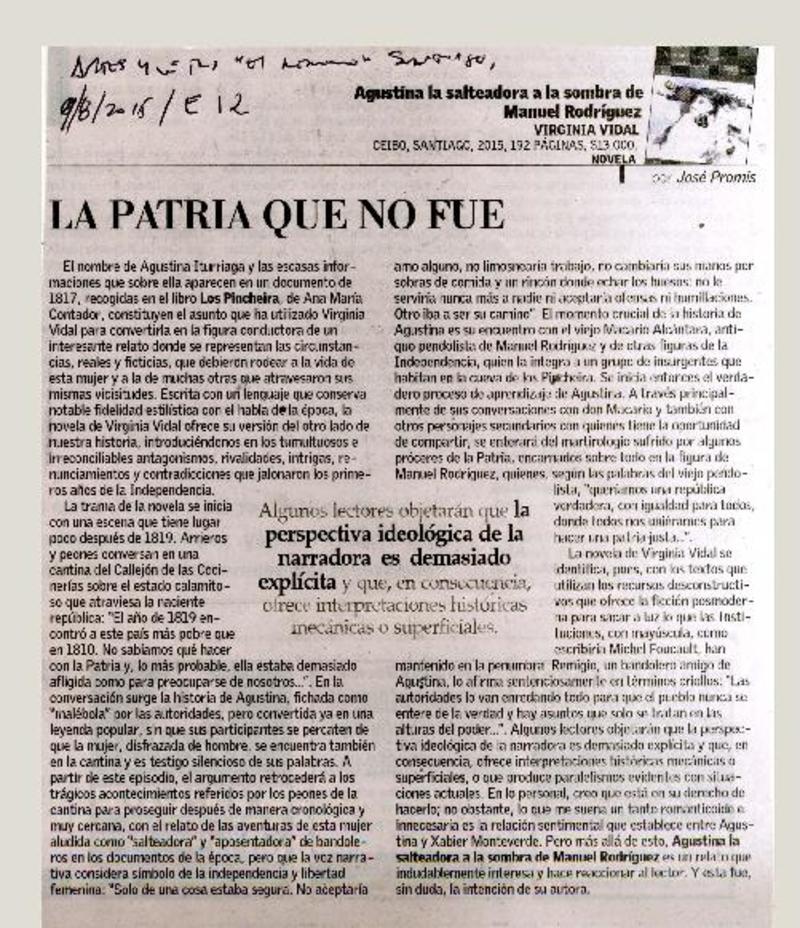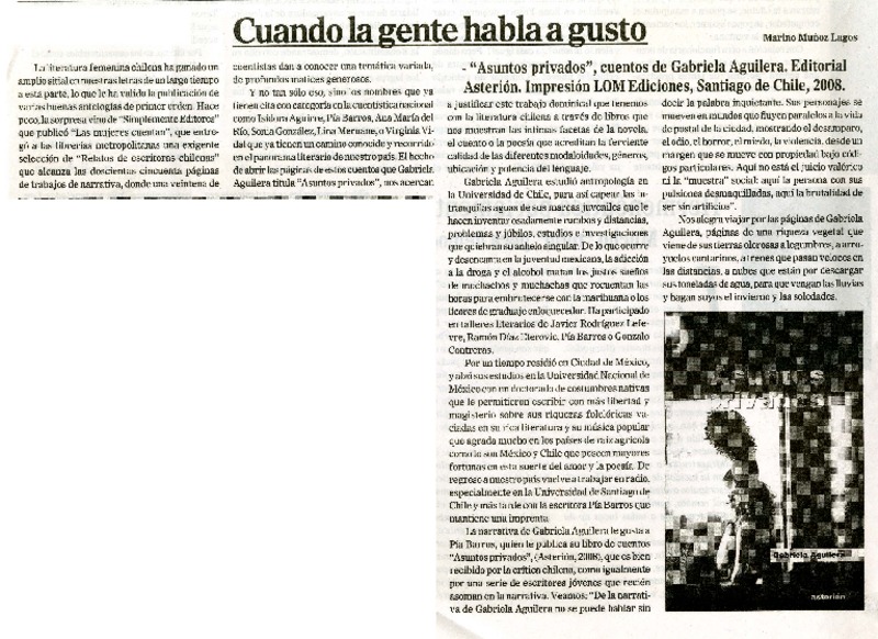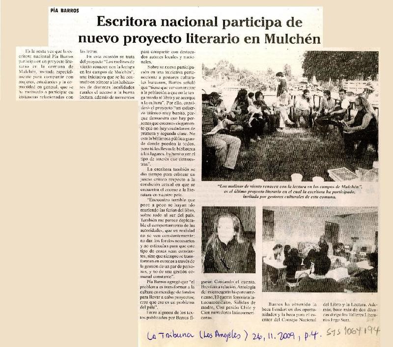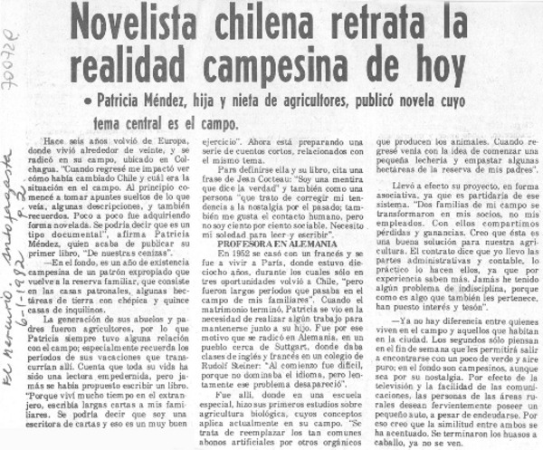 Novelista chilena retrata la realidad campesina de hoy. [artículo]