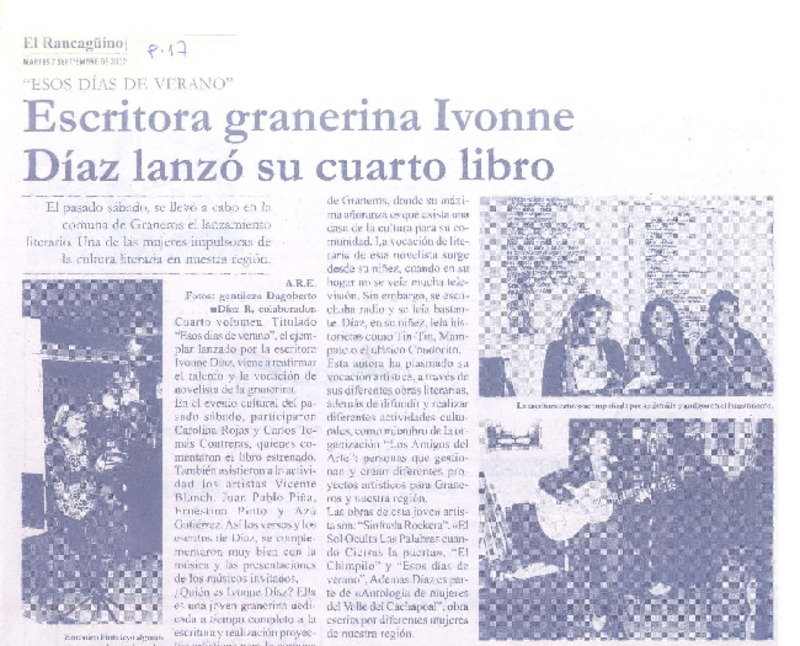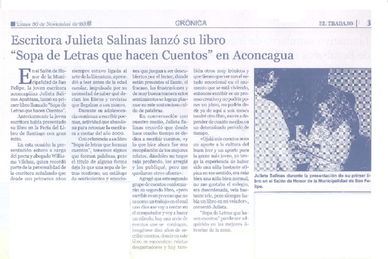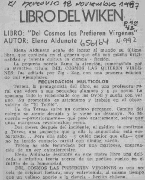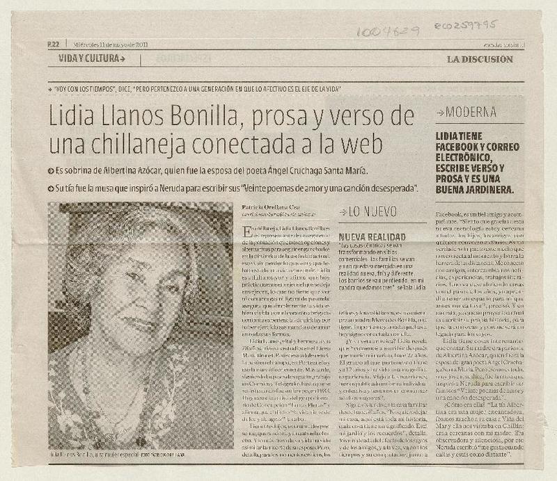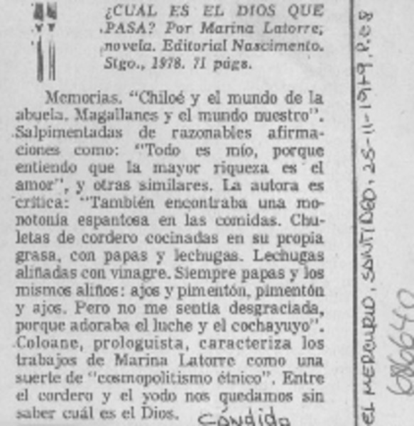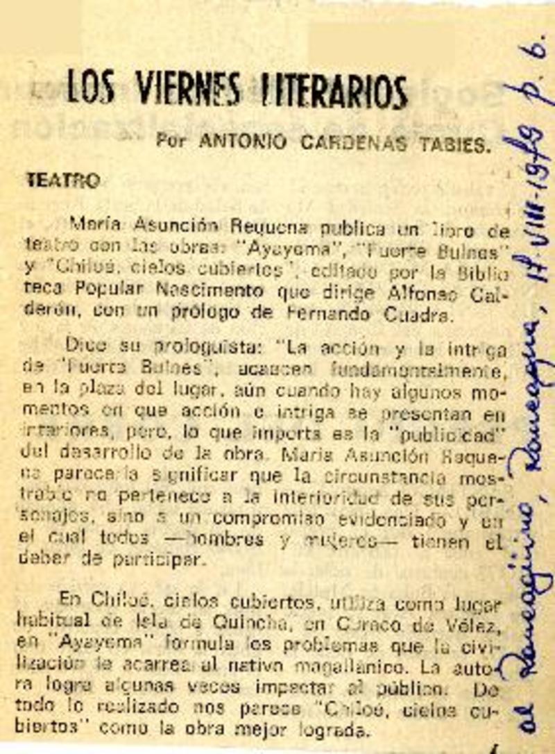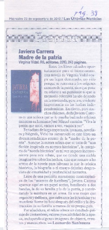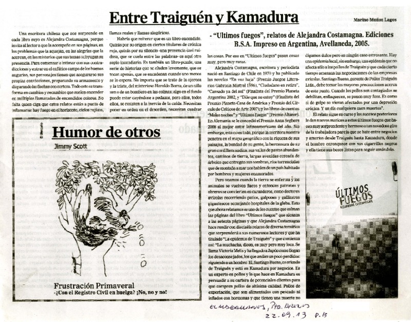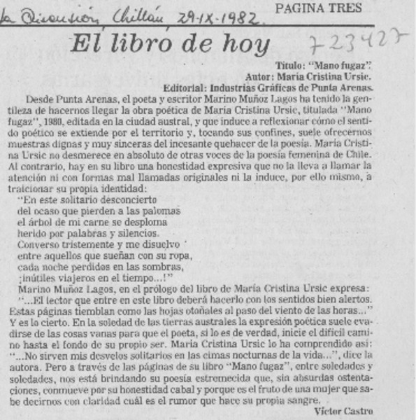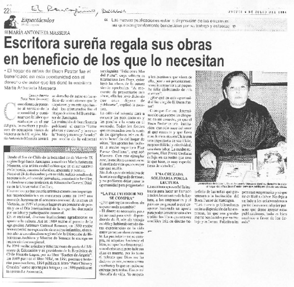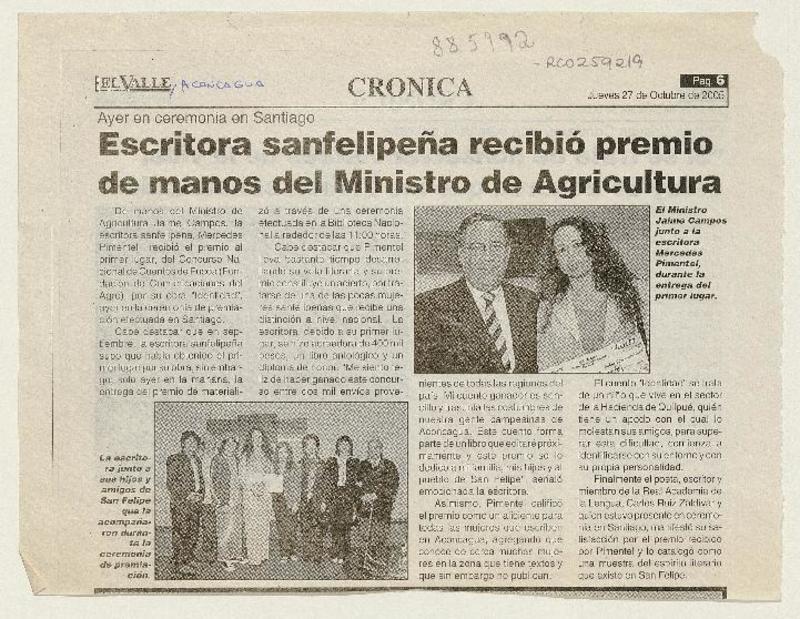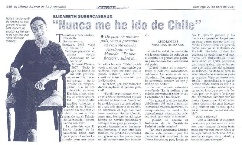 Novelista chilena retrata la realidad campesina de hoy. [artículo]