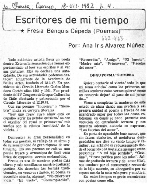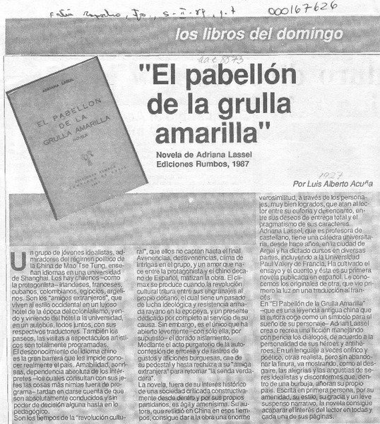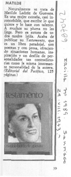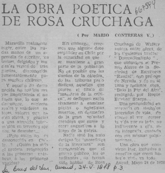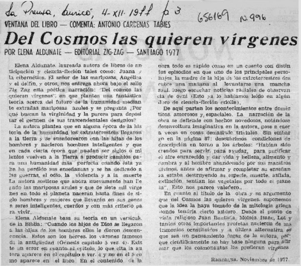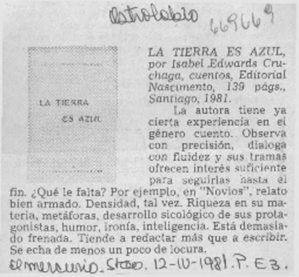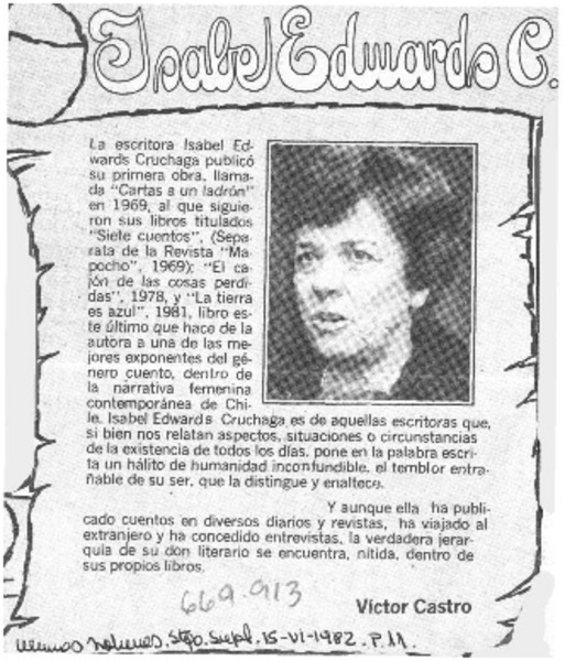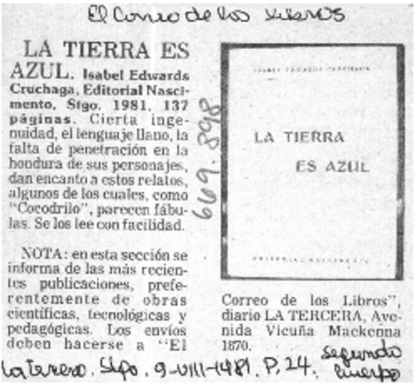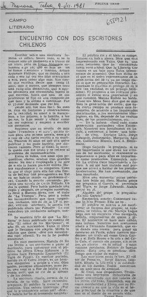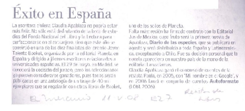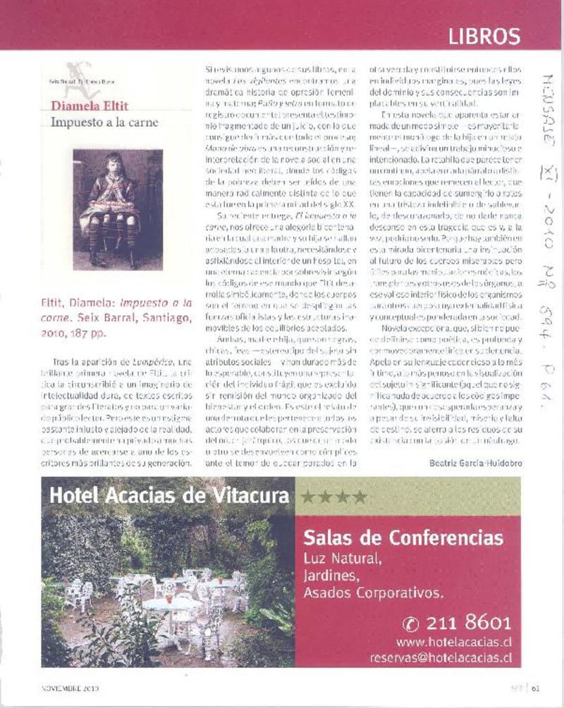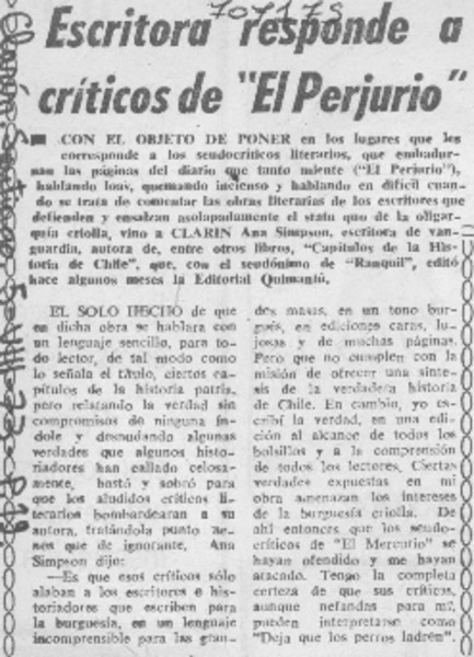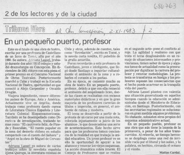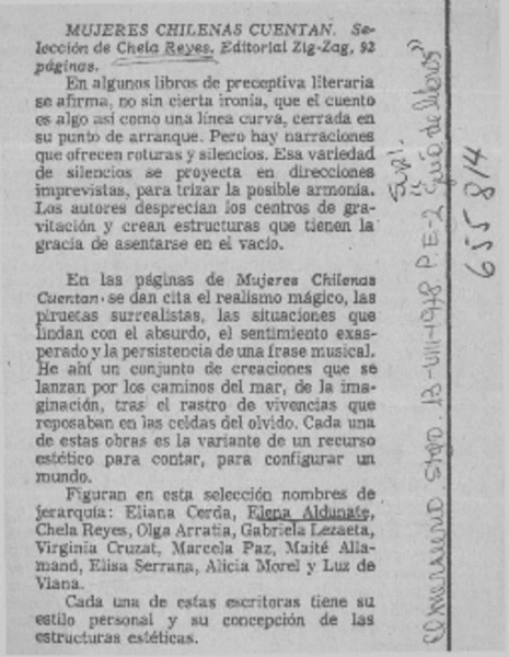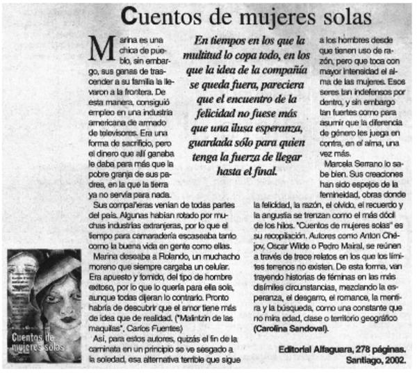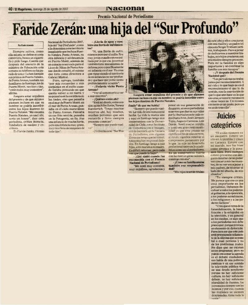 Novelista chilena retrata la realidad campesina de hoy. [artículo]