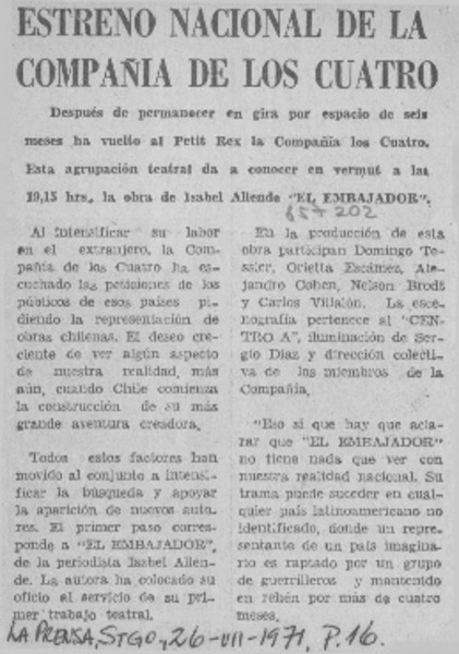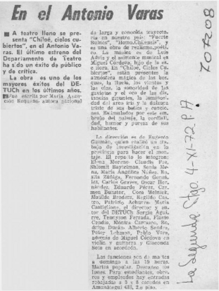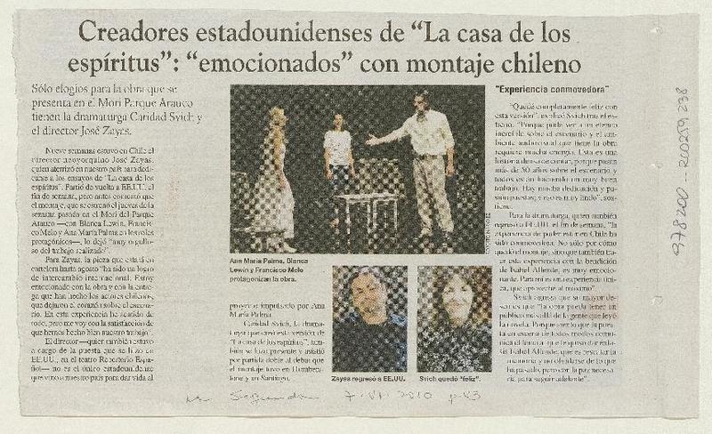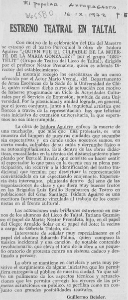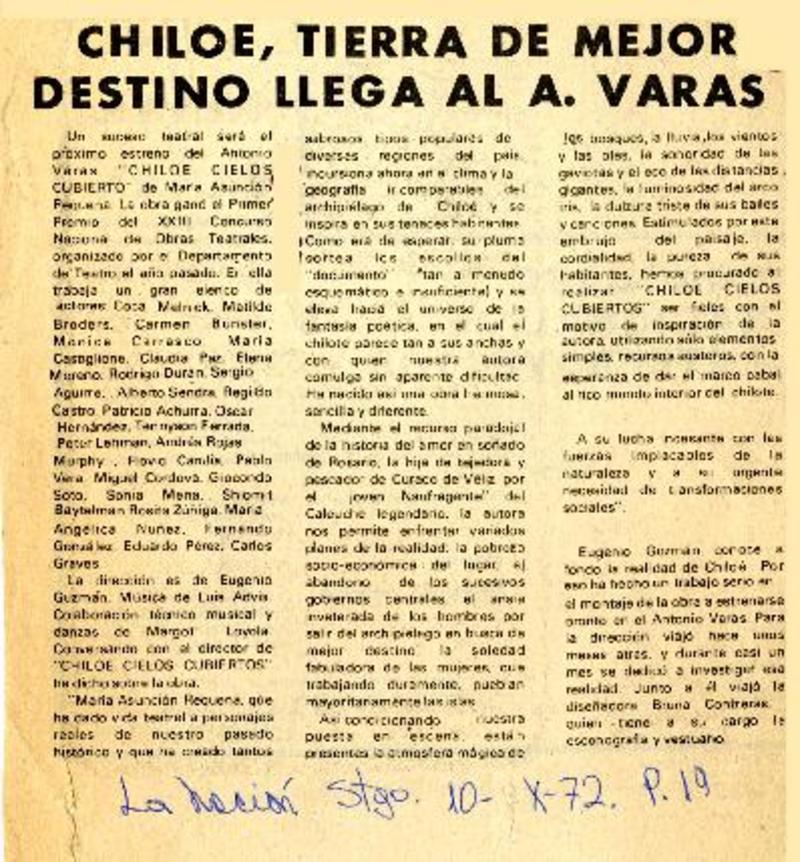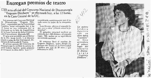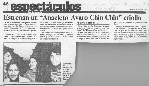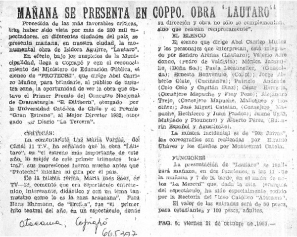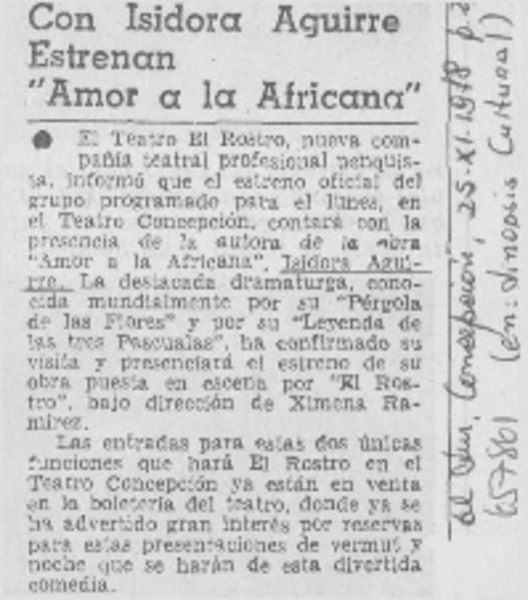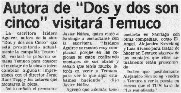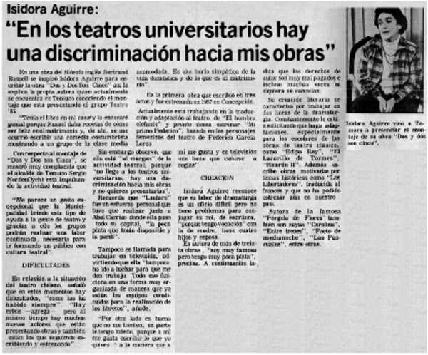 Aficionados ensayan obra de autora Isidora Aguirre. [artículo]