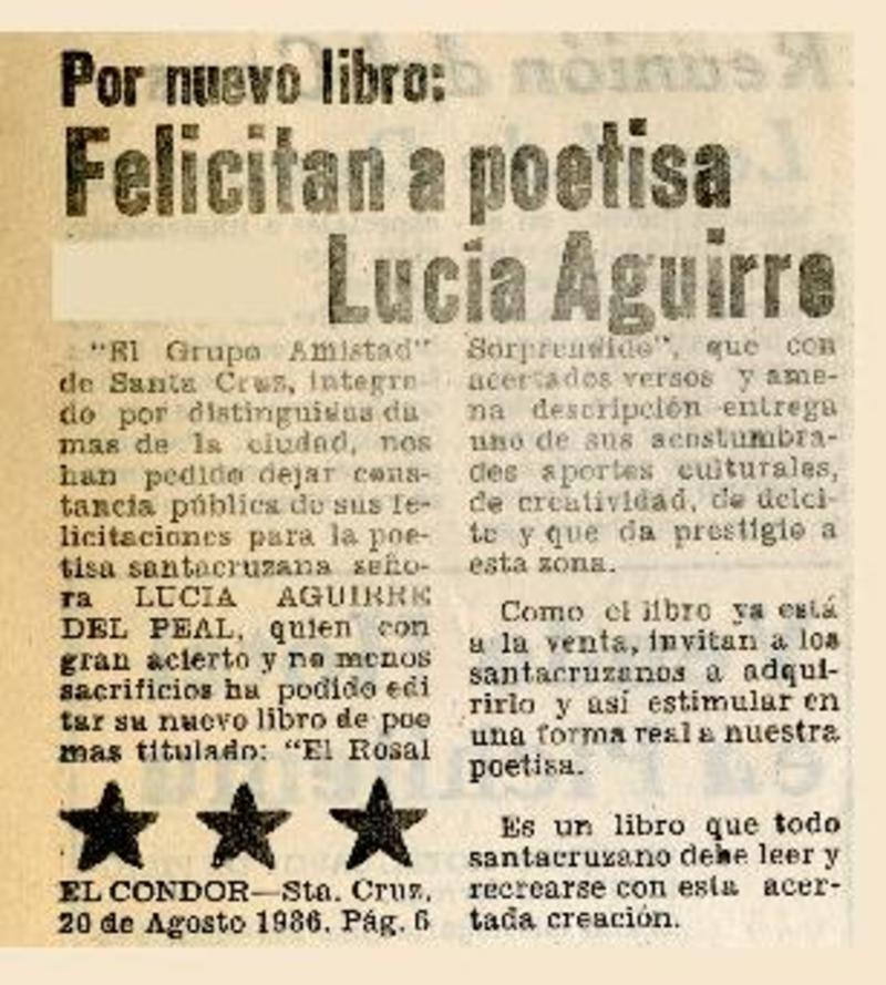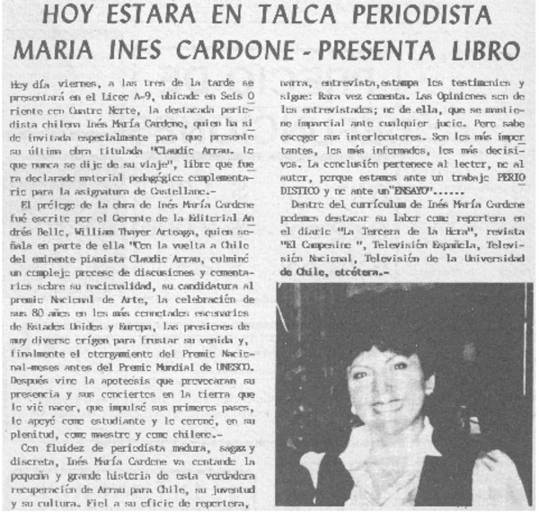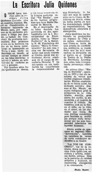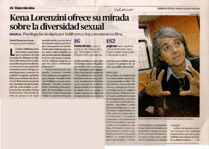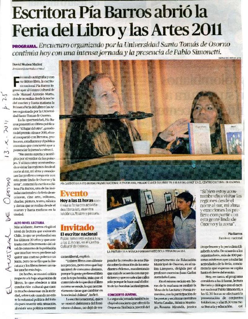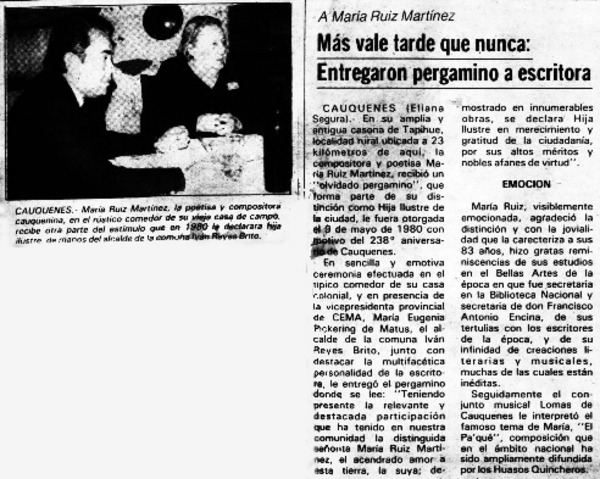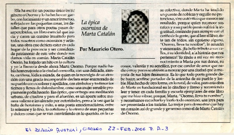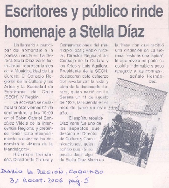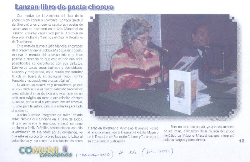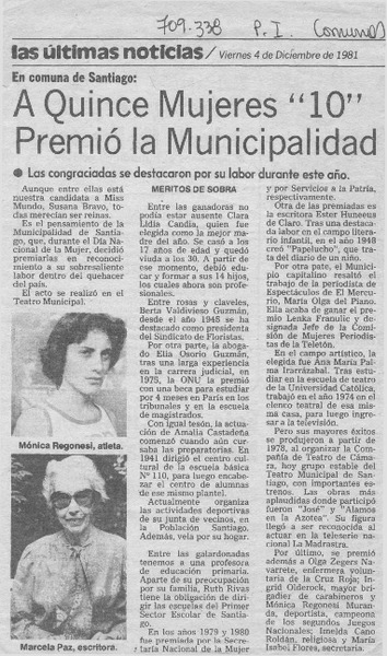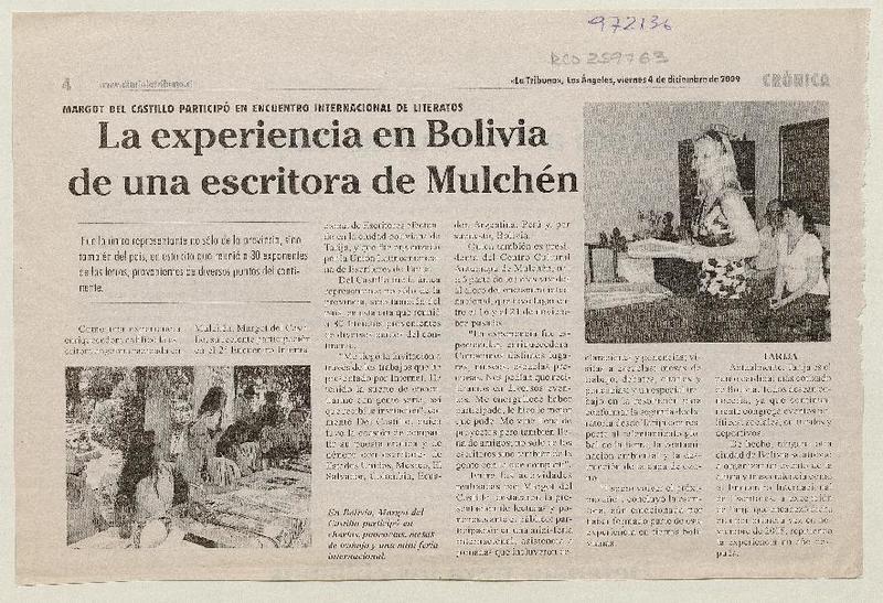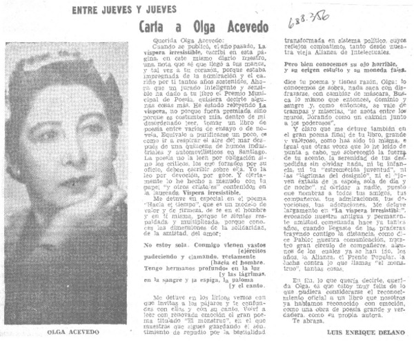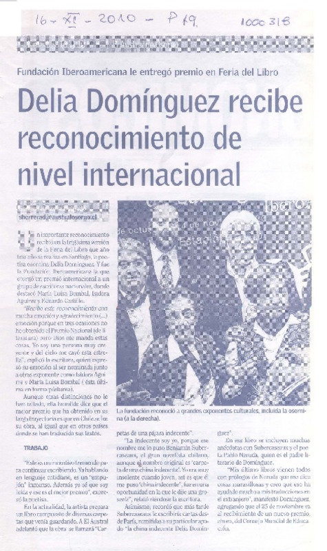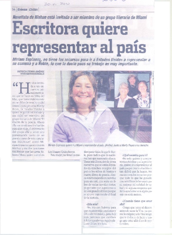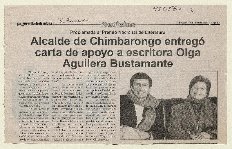 Alcalde de Chimbarongo entrega carta de apoyo a escritora Olga Aguilera Bustamante [artículo] :