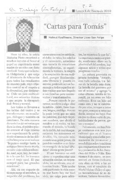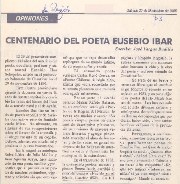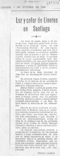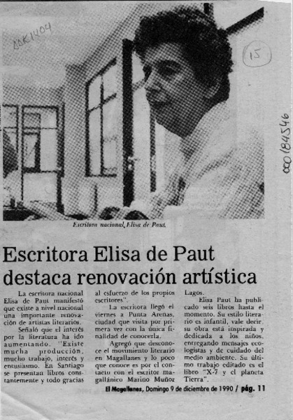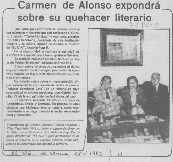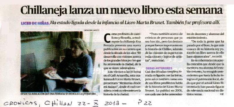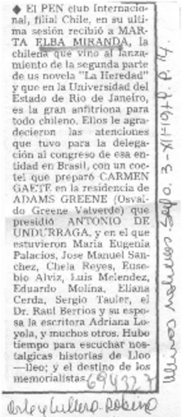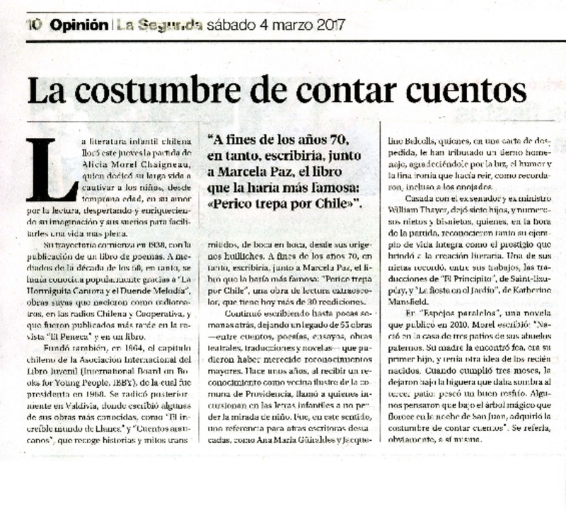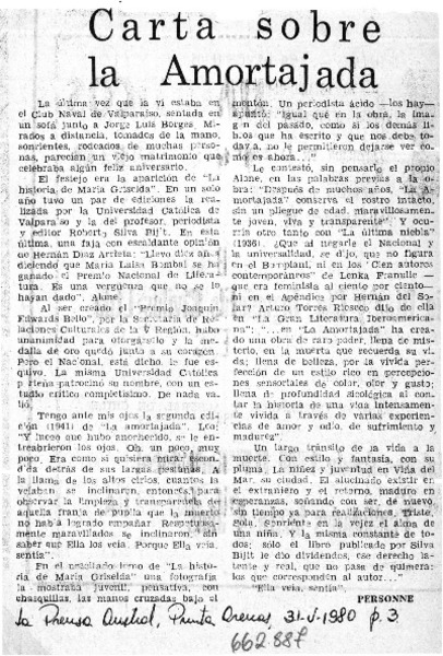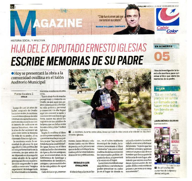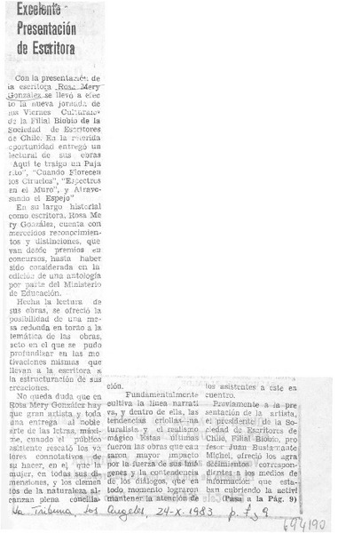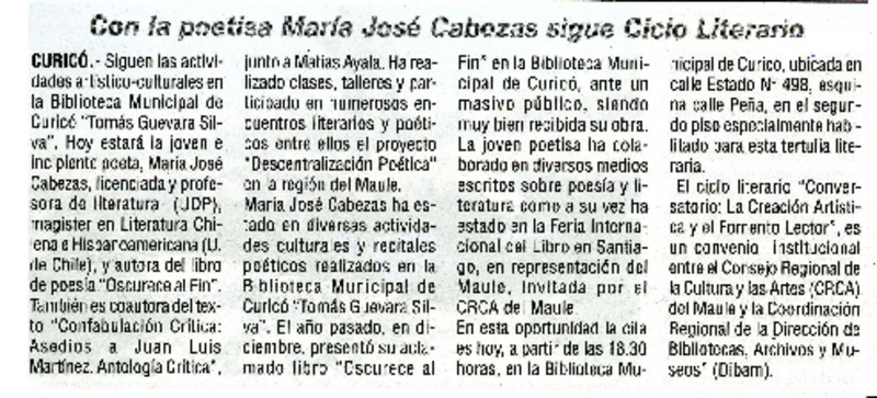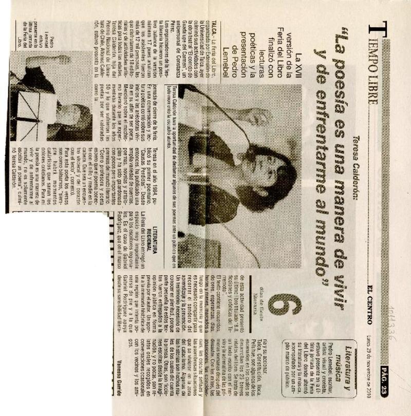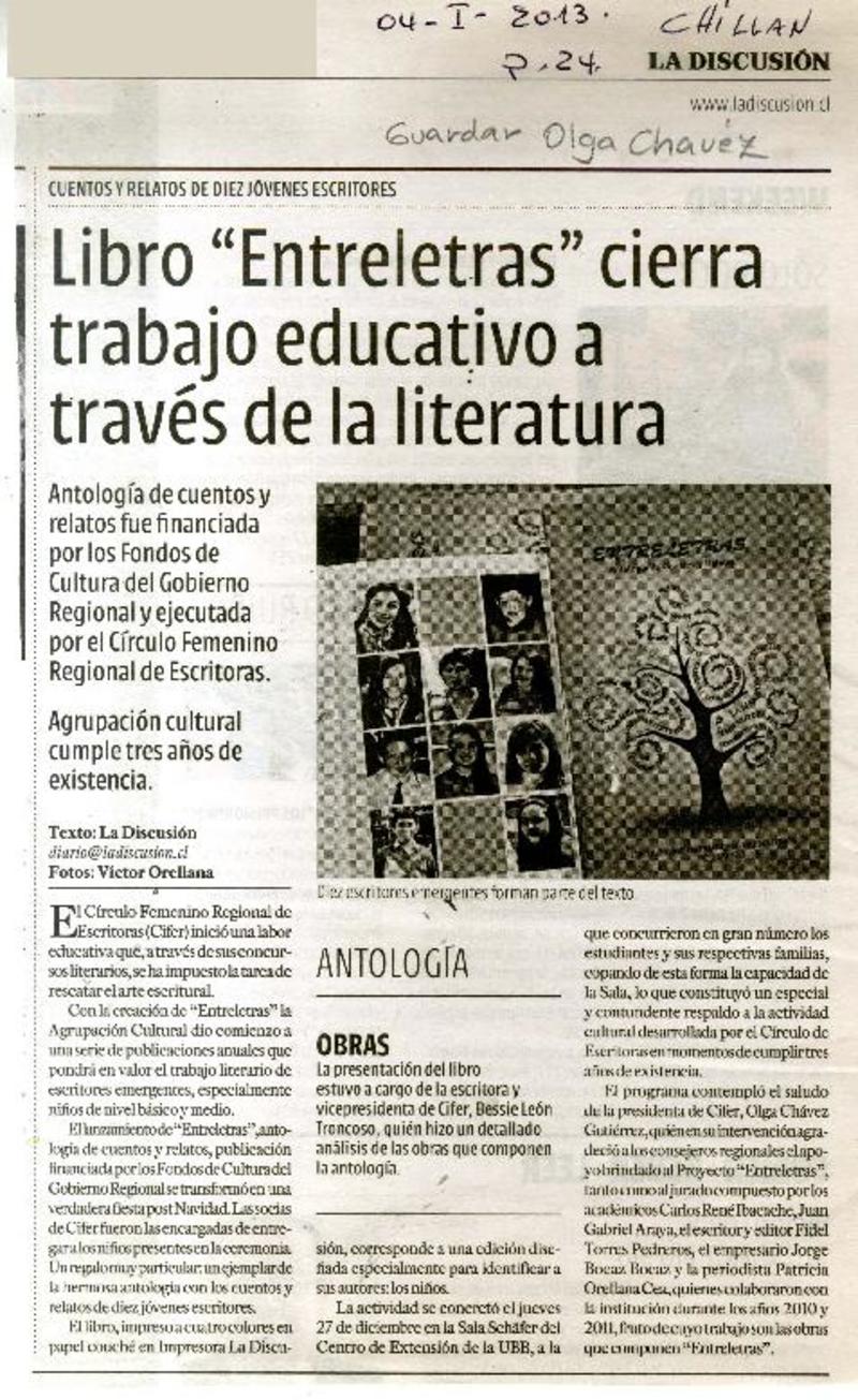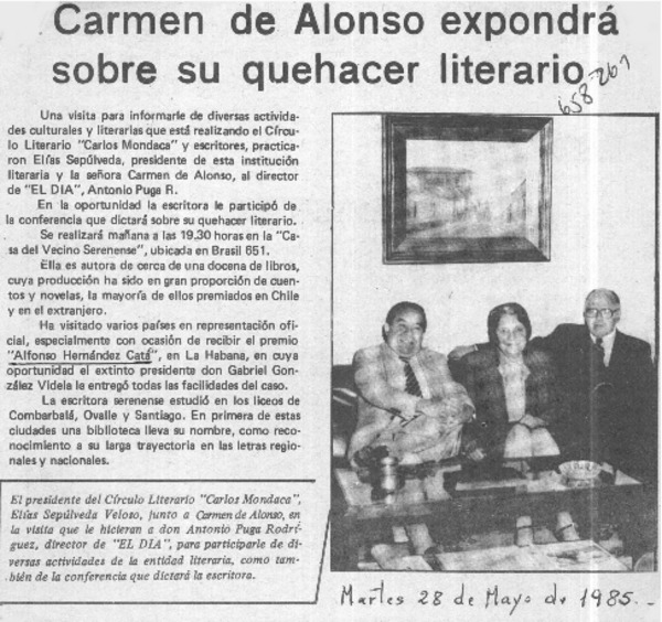 Alcalde de Chimbarongo entrega carta de apoyo a escritora Olga Aguilera Bustamante [artículo] :