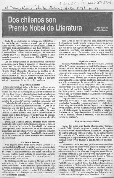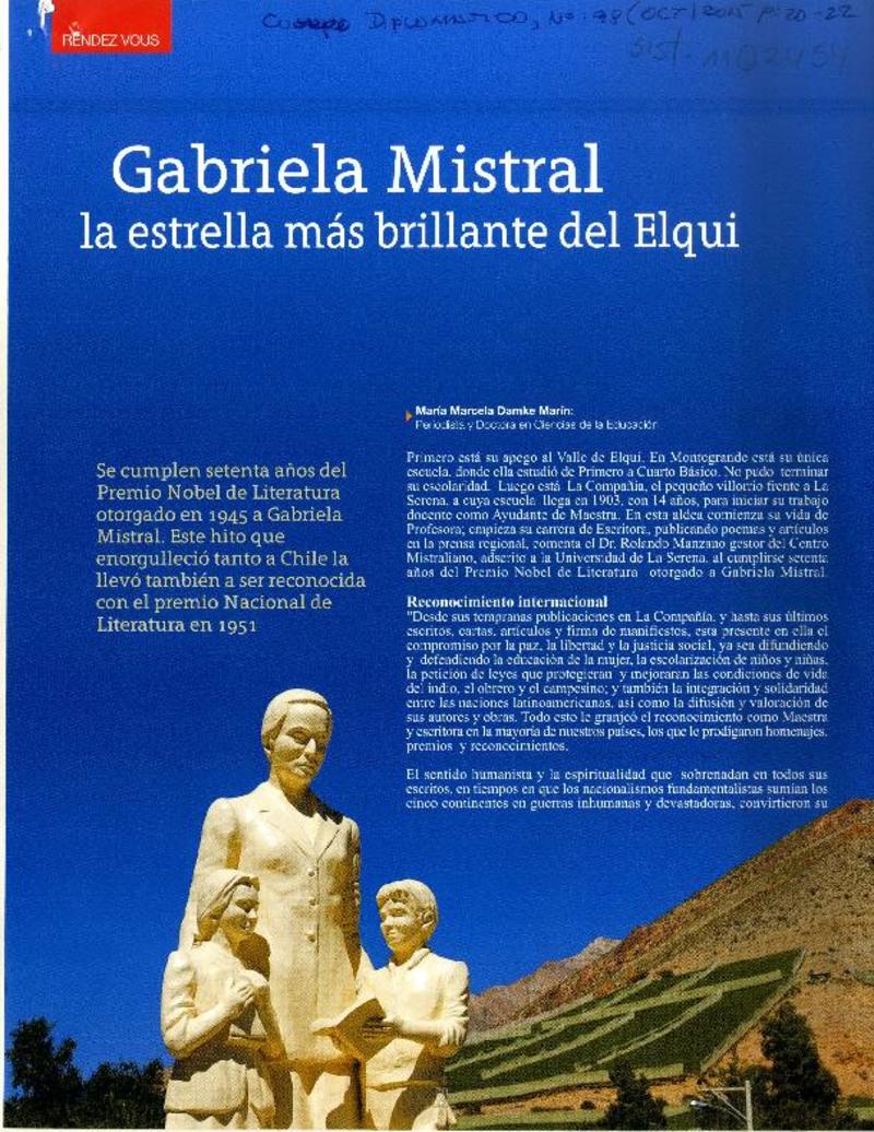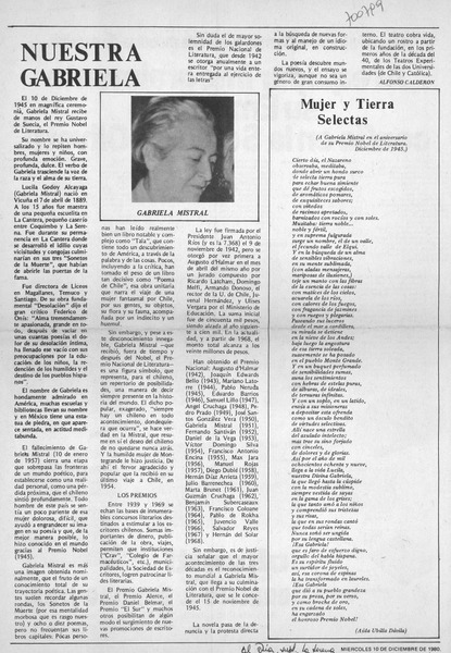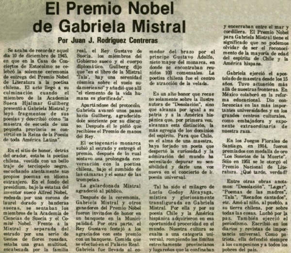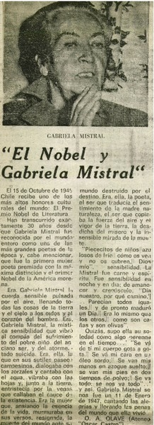 Nuestro primer Premio Nobel de Literatura, Gabriela Mistral [artículo] Orlando González Gutiérrez.