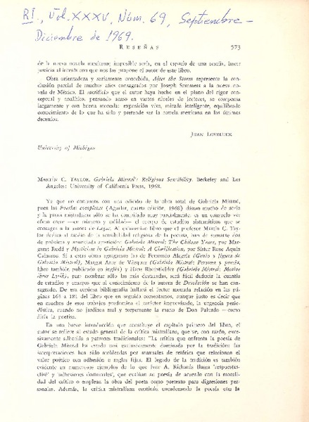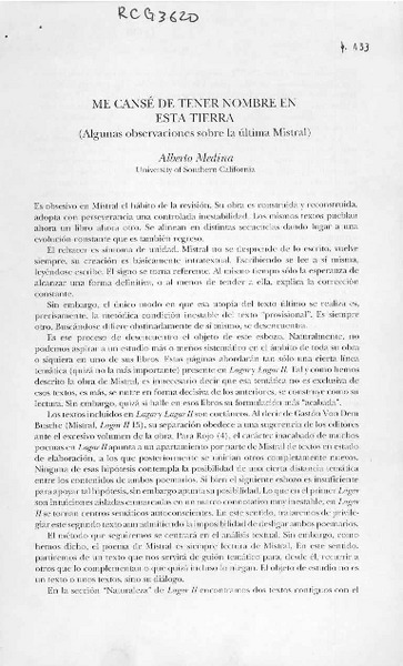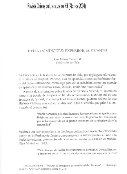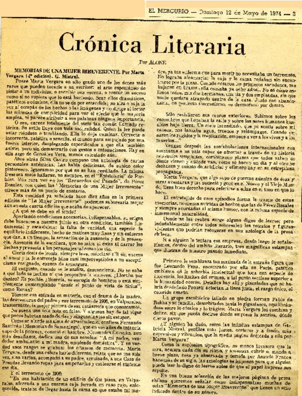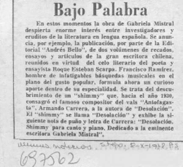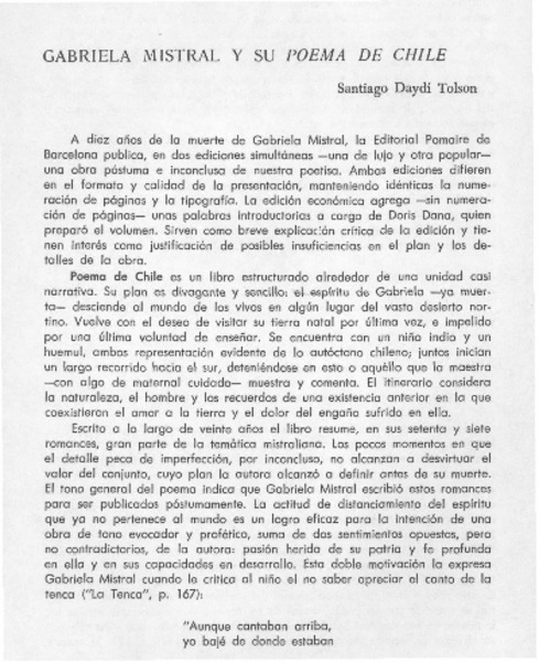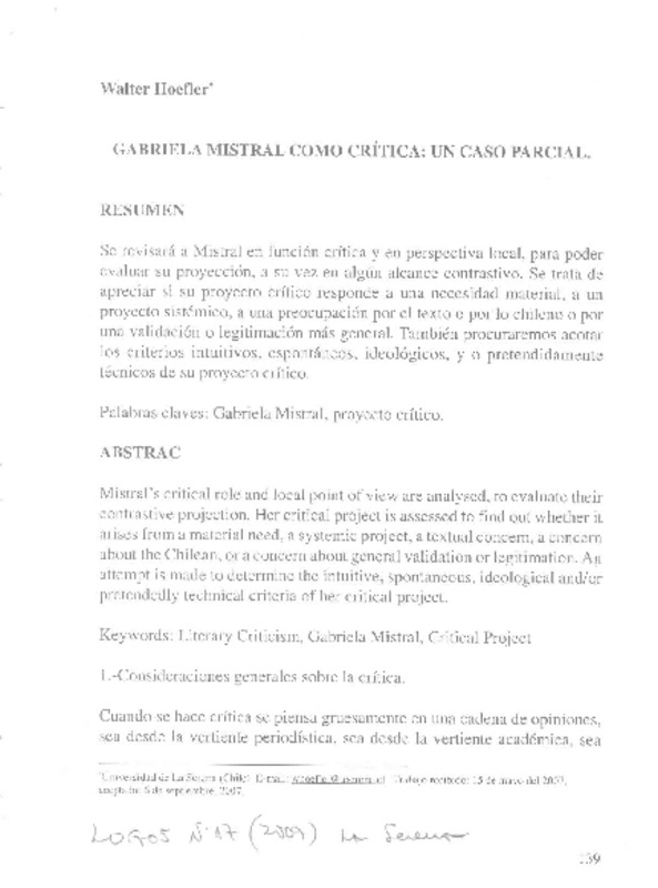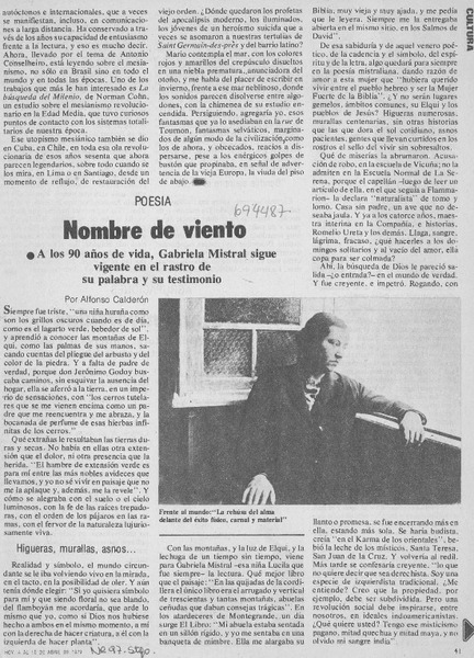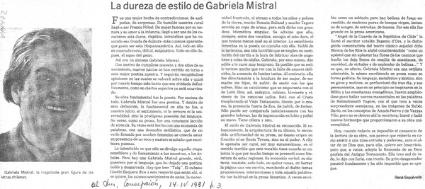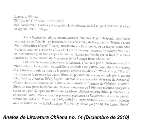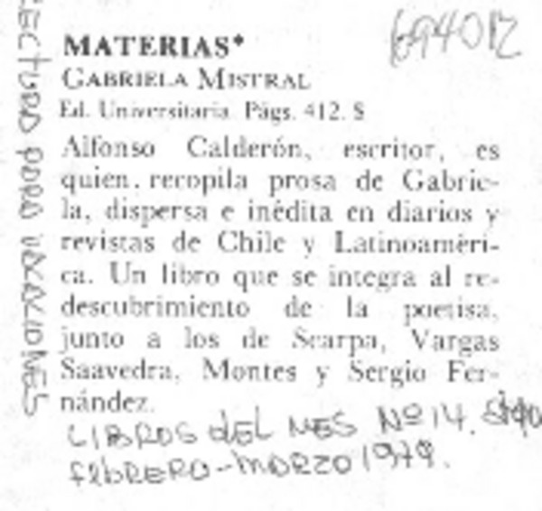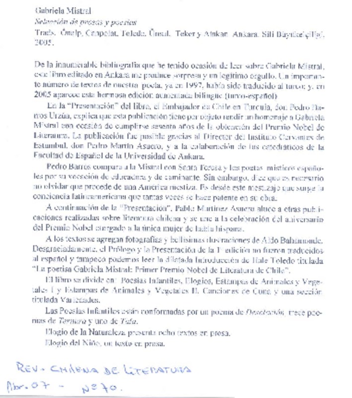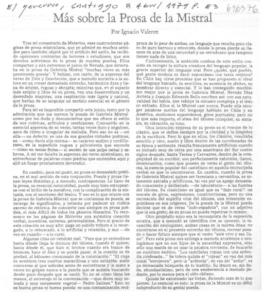 Nota sobre la prosa de Gabriela Mistral [artículo] Alfonso Calderón.