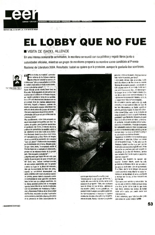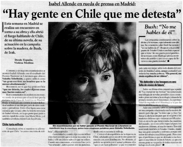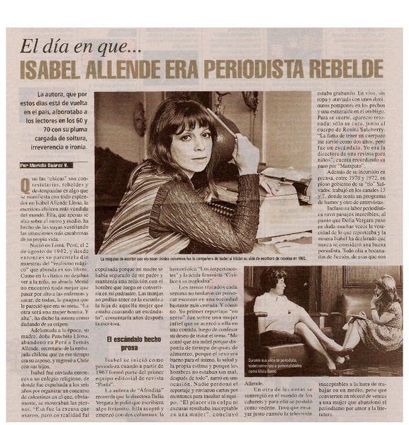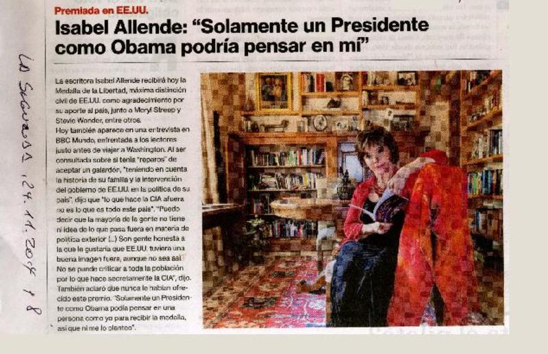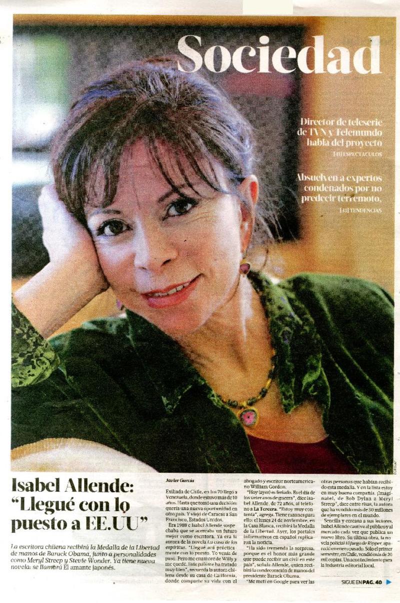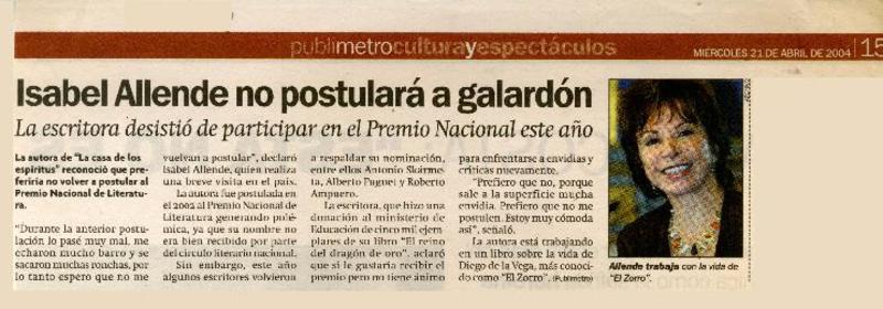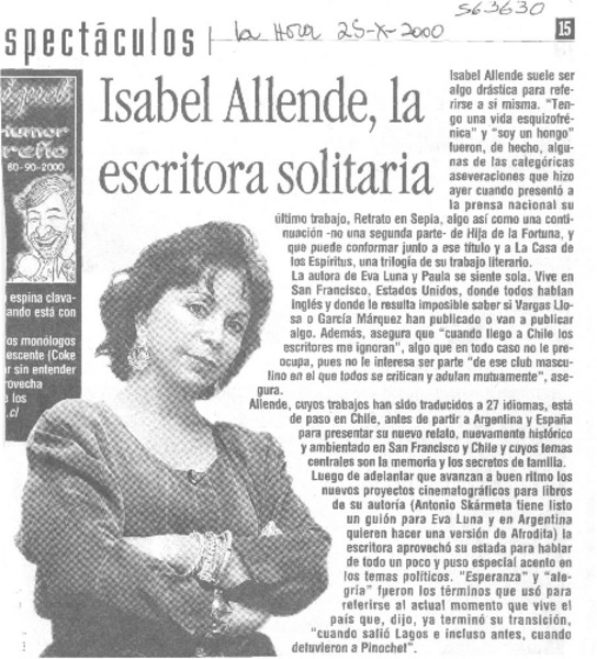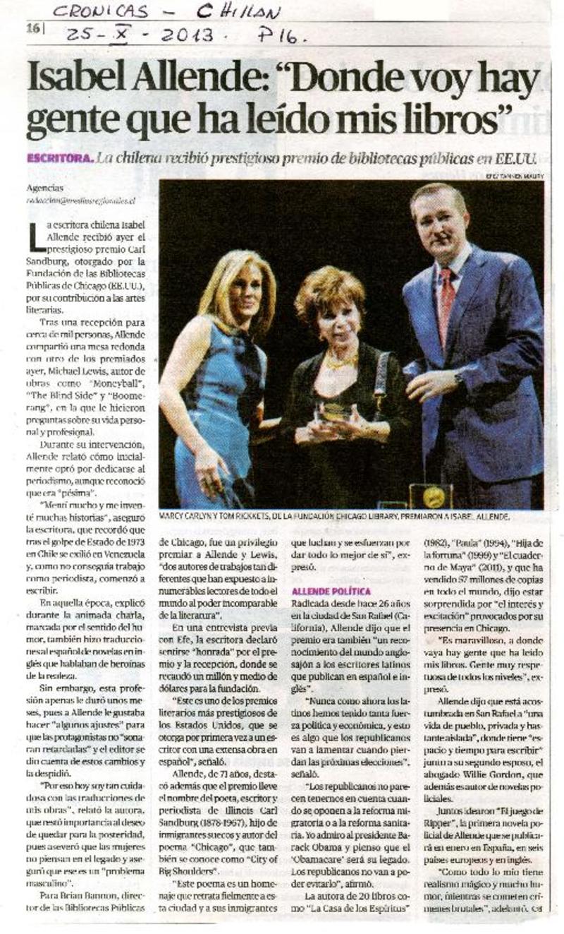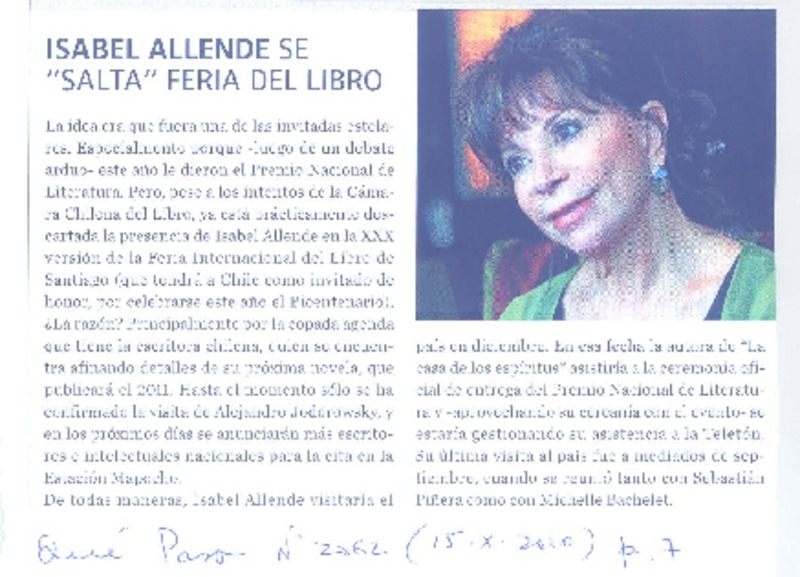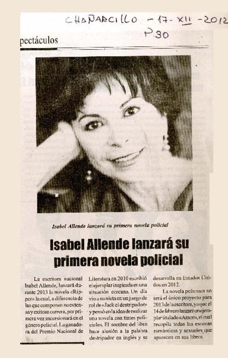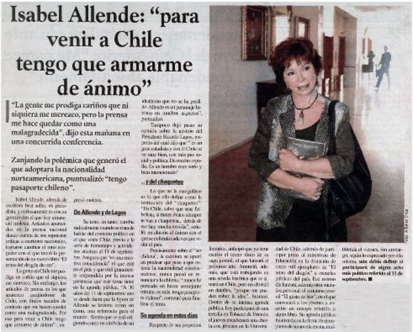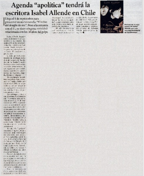 Agente "apolítica" tendrá la escritora Isabel Allende en Chile. [artículo]