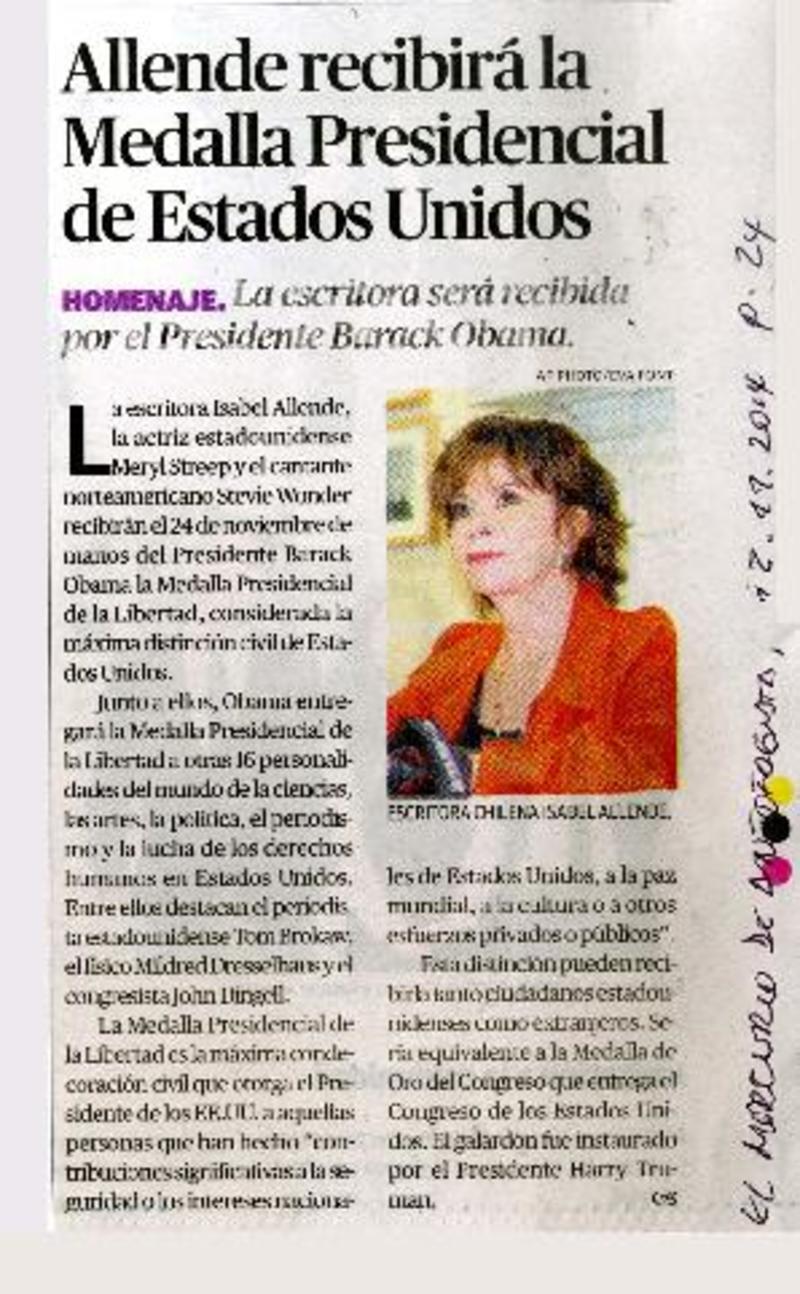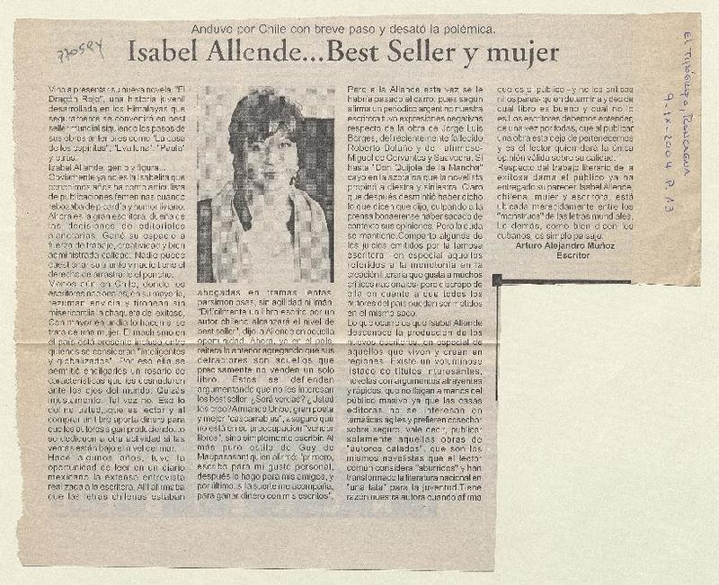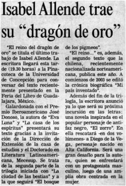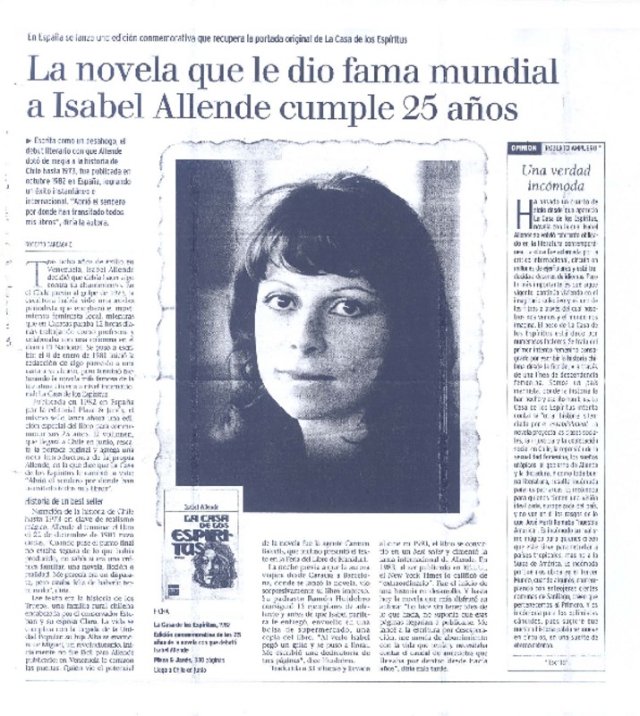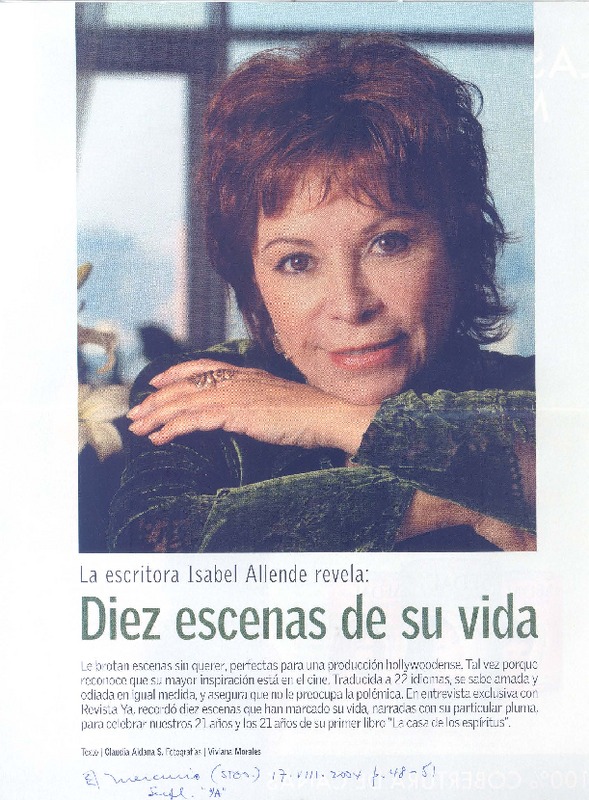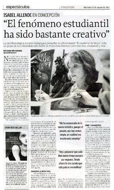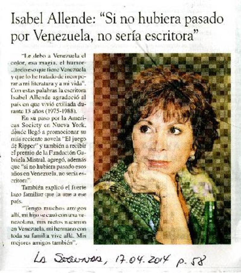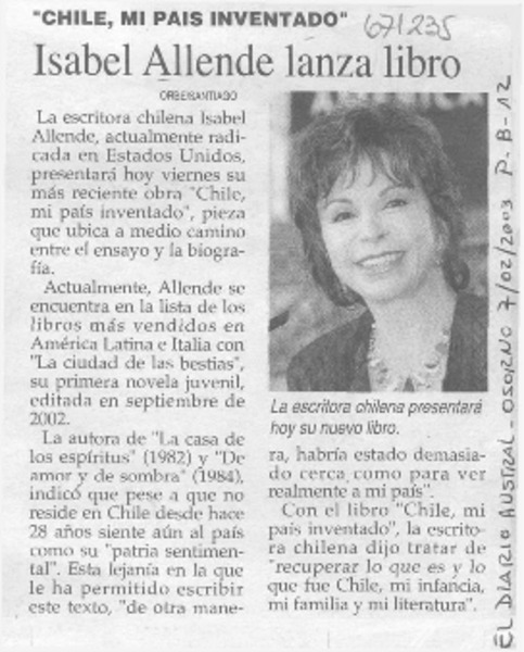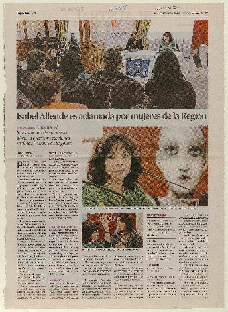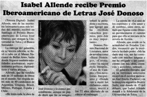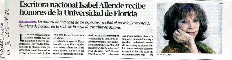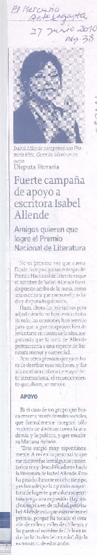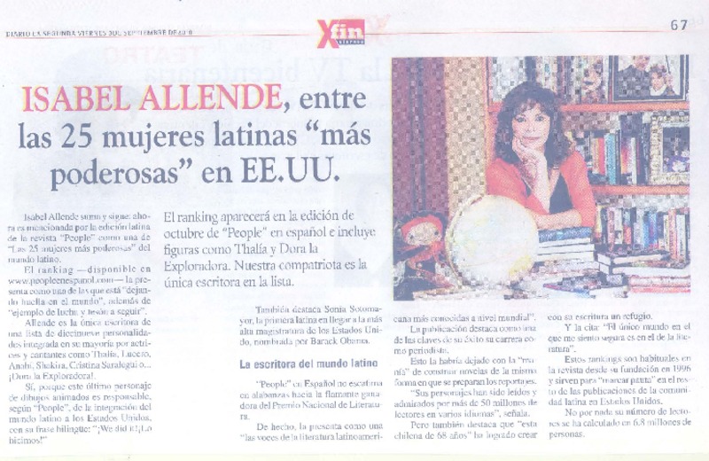 Agente "apolítica" tendrá la escritora Isabel Allende en Chile. [artículo]
