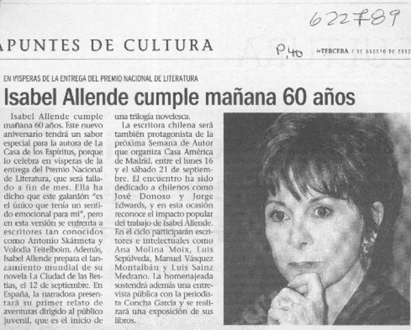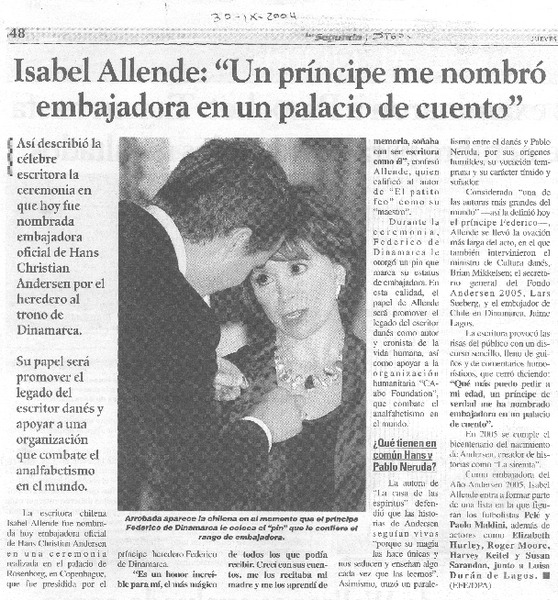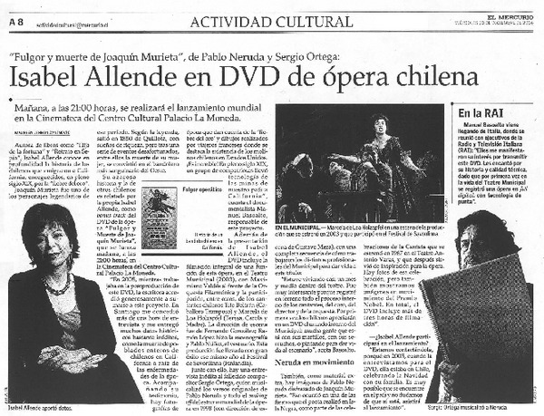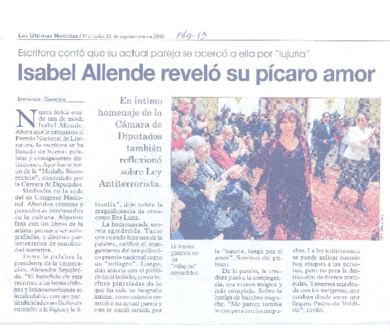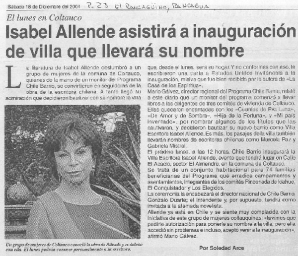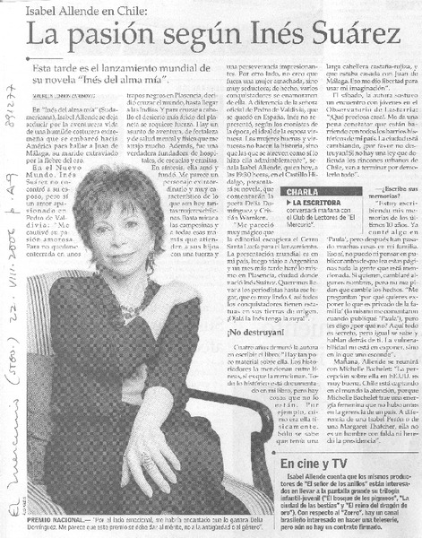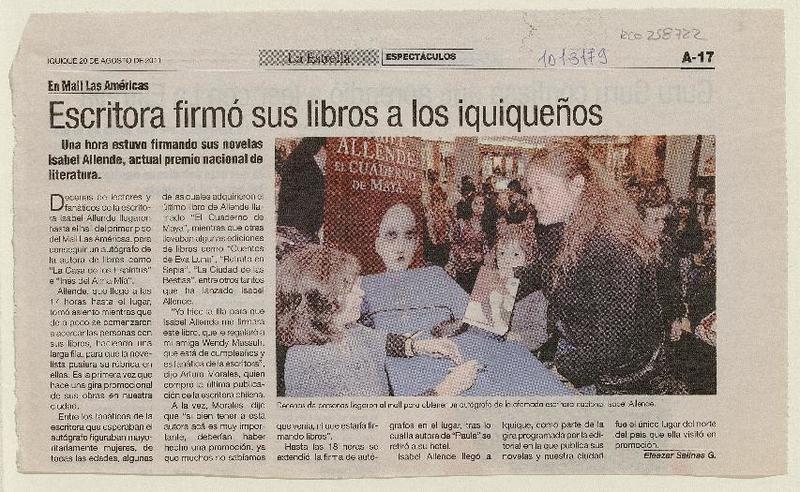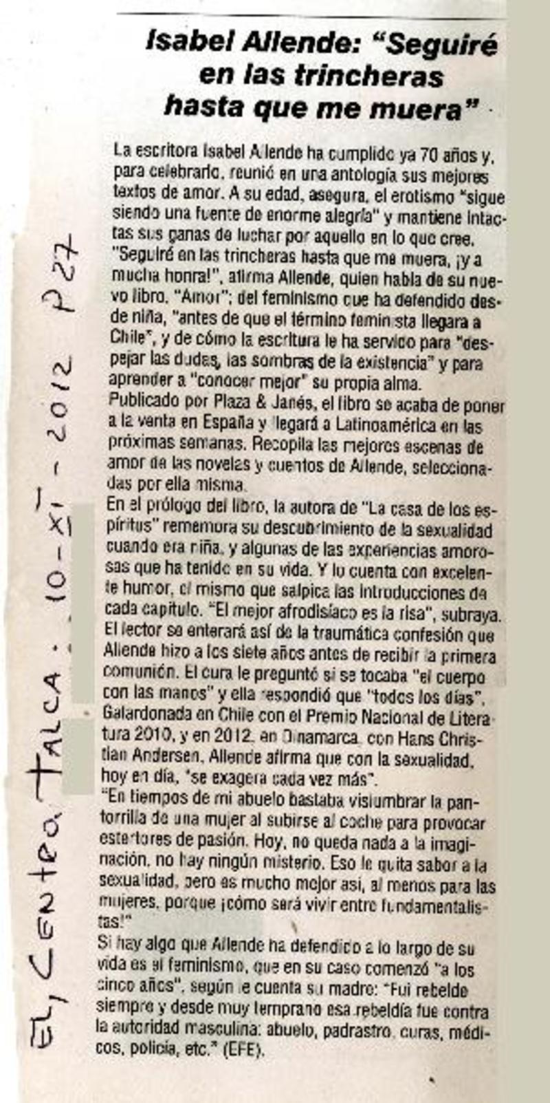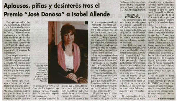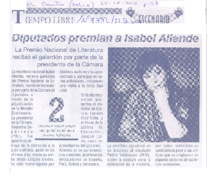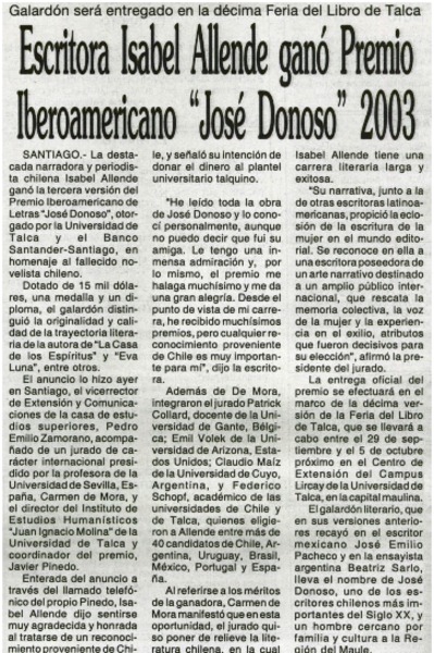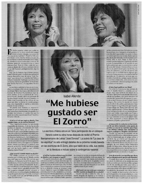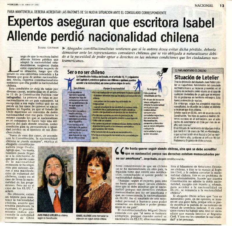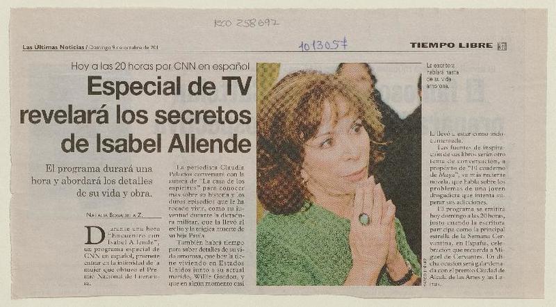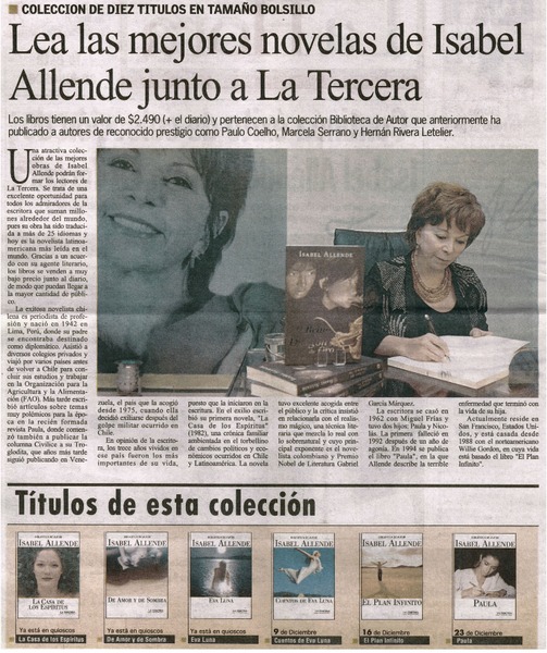 Agente "apolítica" tendrá la escritora Isabel Allende en Chile. [artículo]