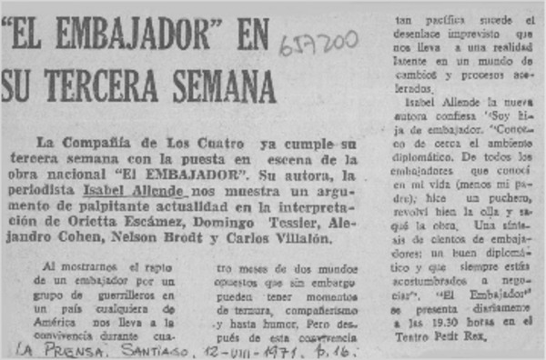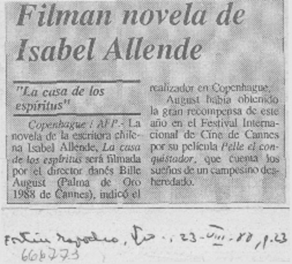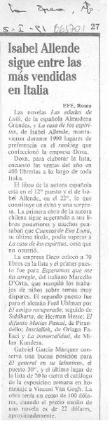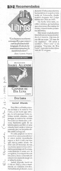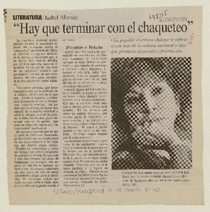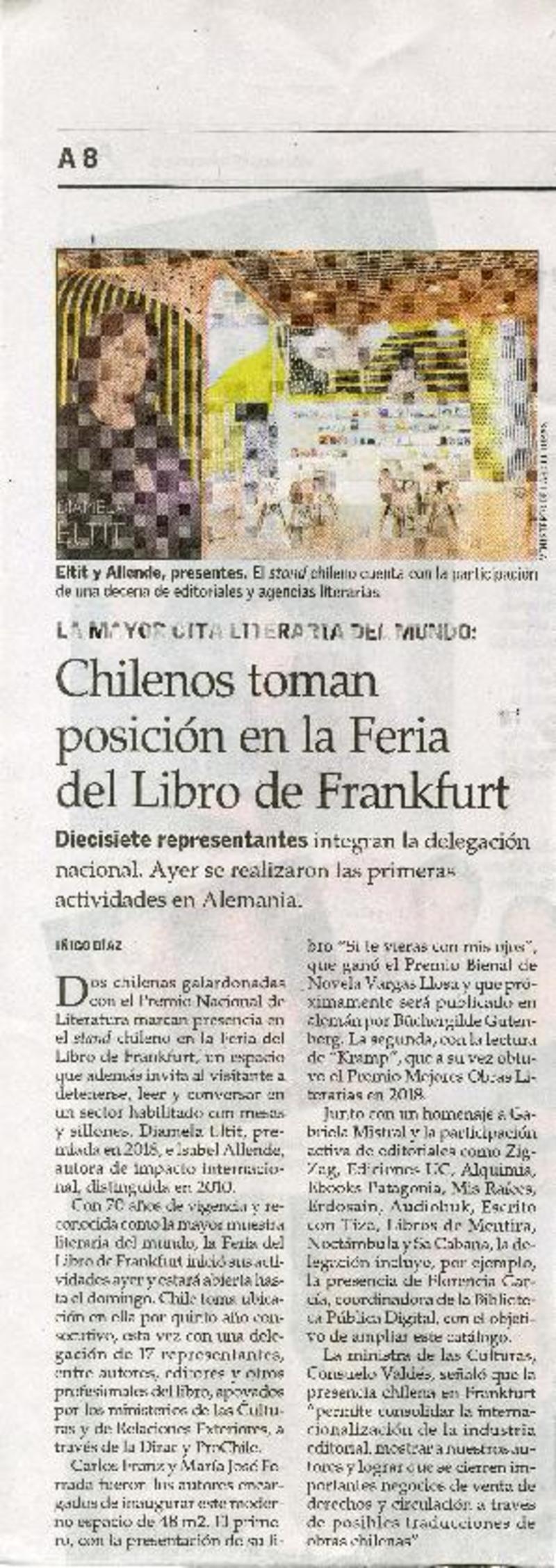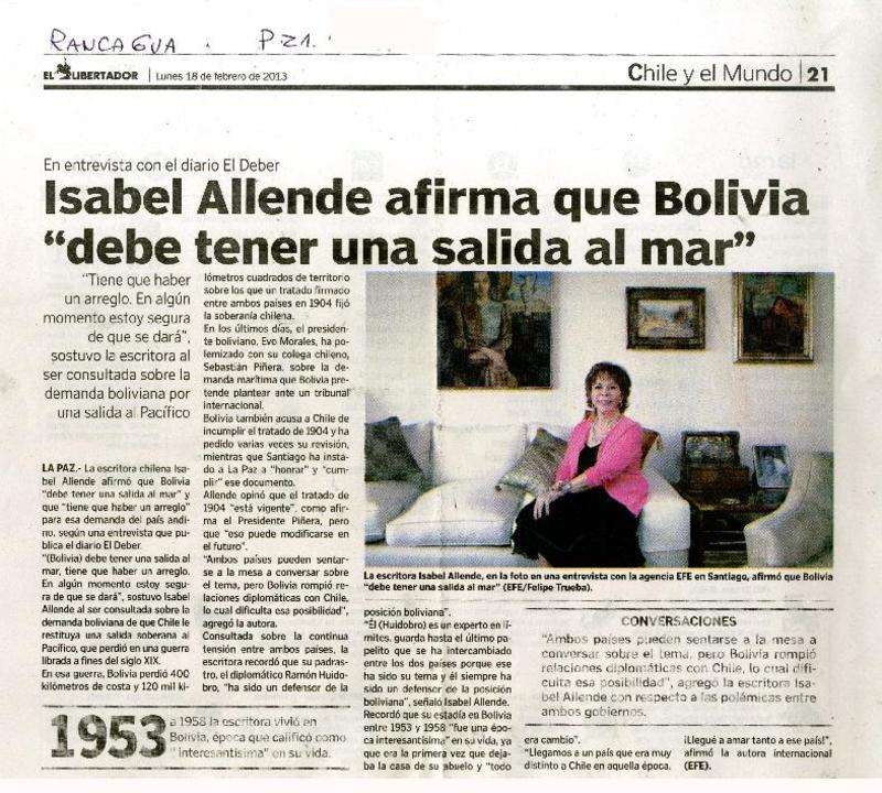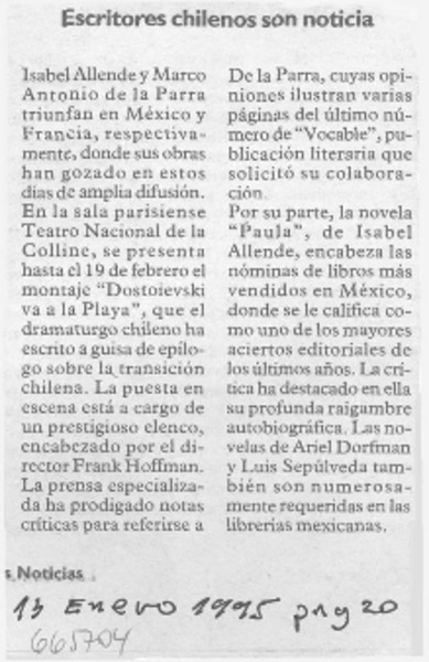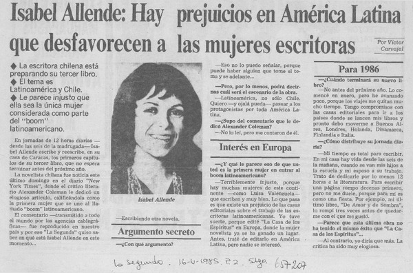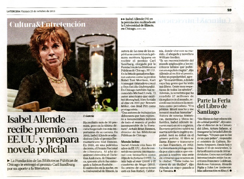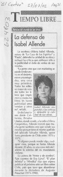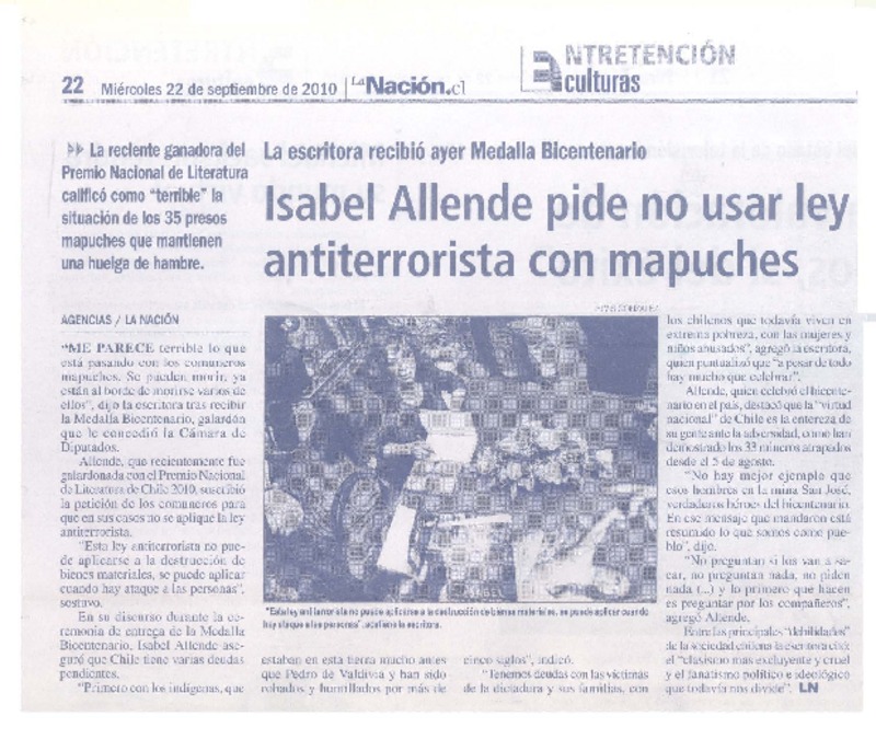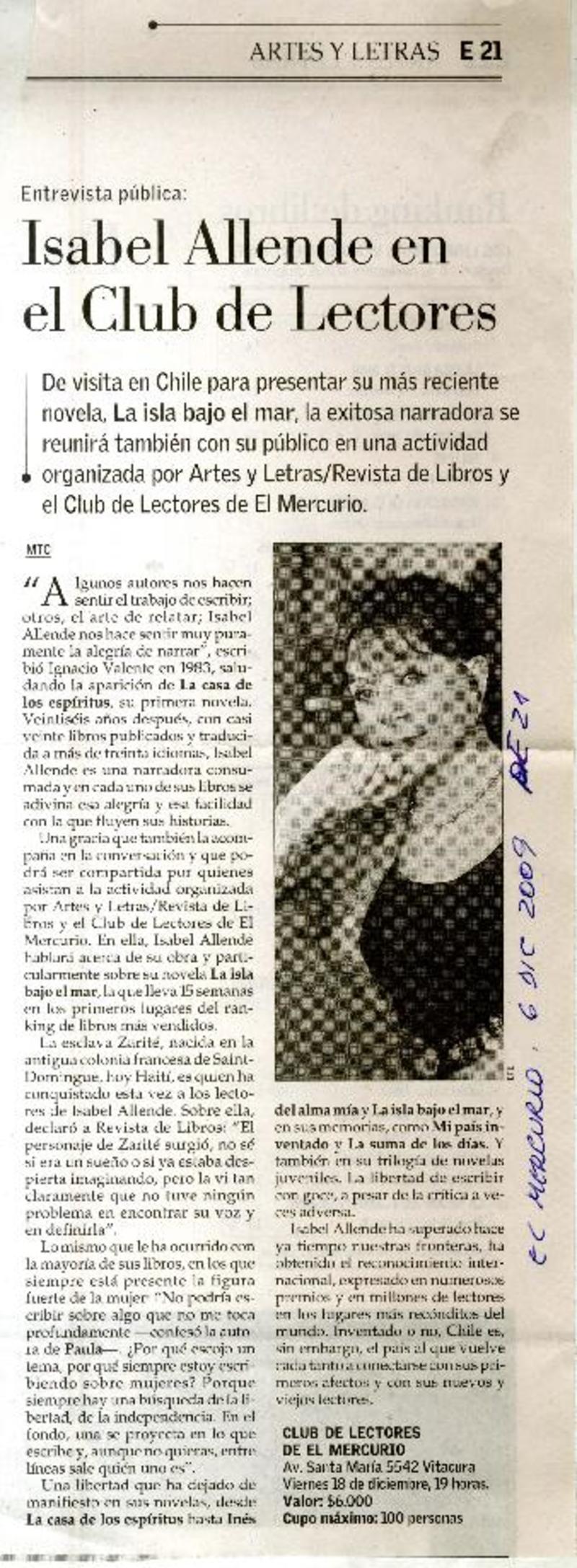 Agente "apolítica" tendrá la escritora Isabel Allende en Chile. [artículo]