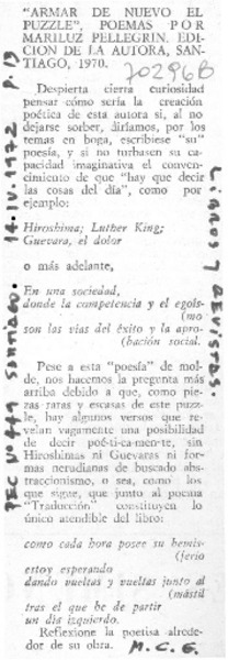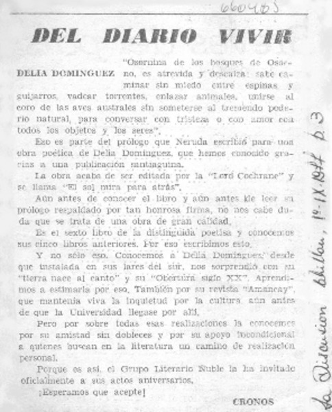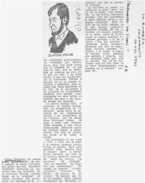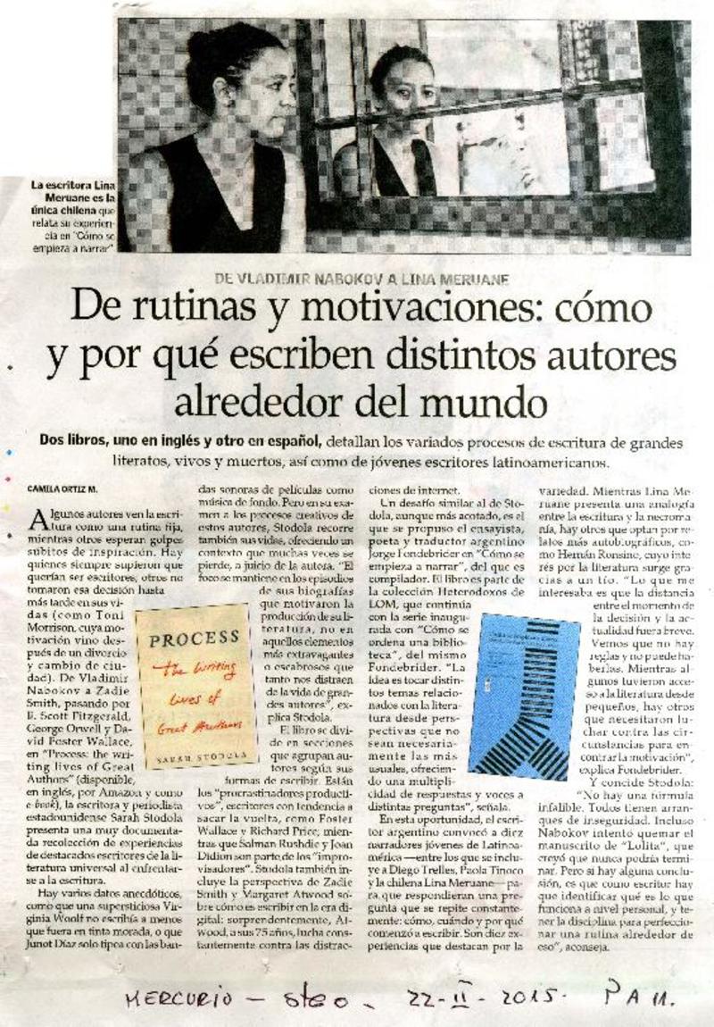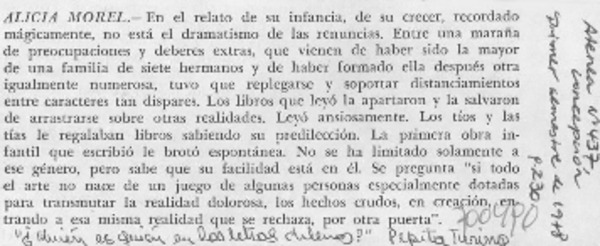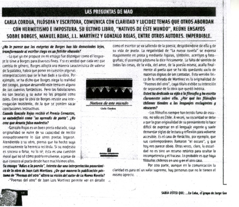 Nada más solitario que escribir una novela : [entrevistas] [artículo] Mario Rodríguez Ordenes.