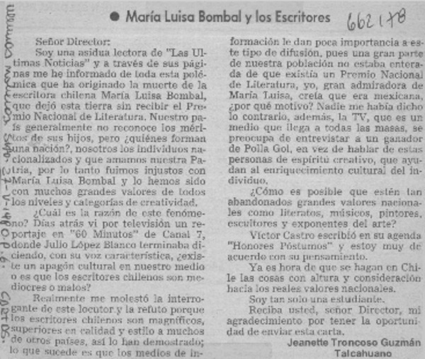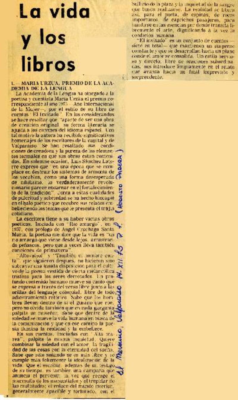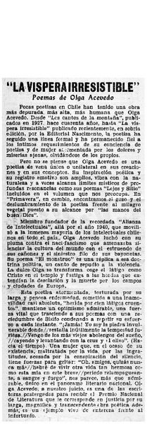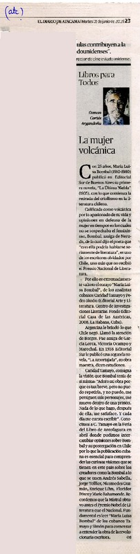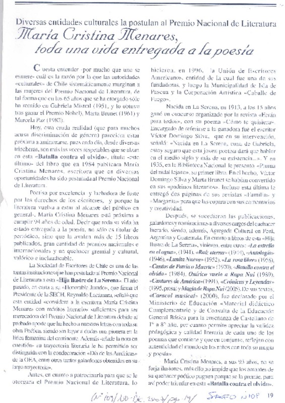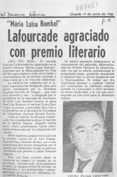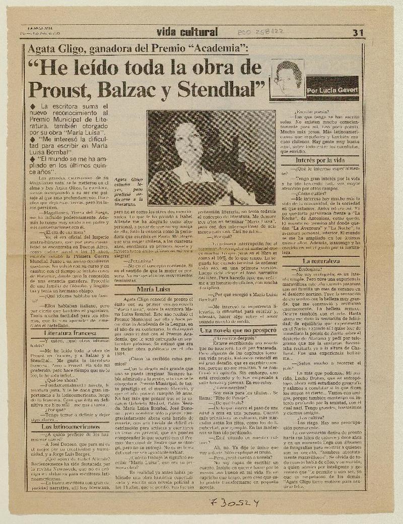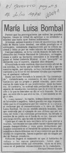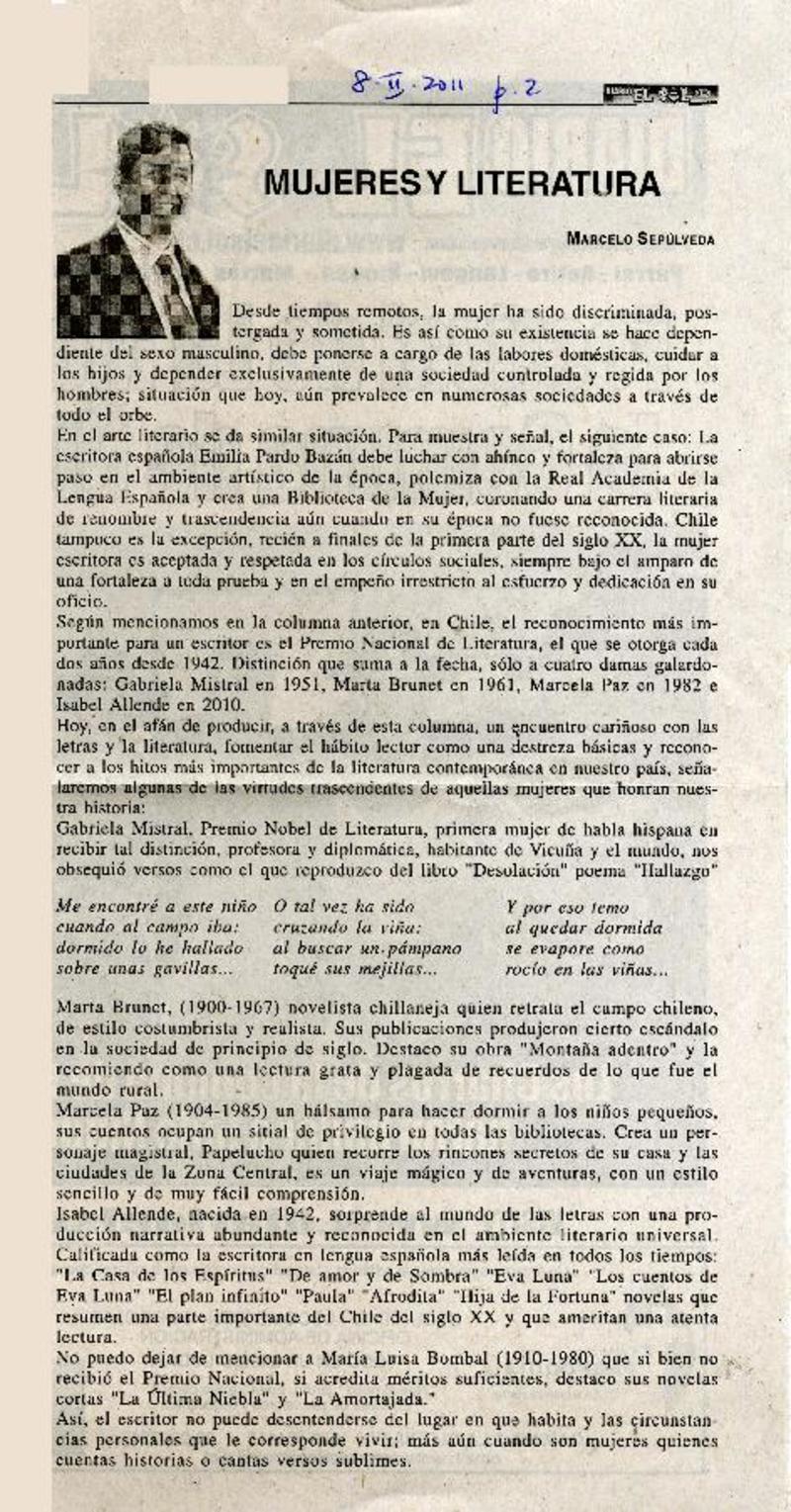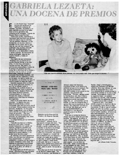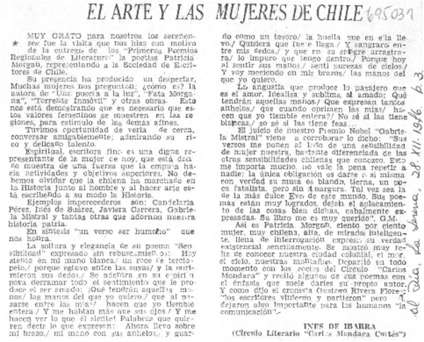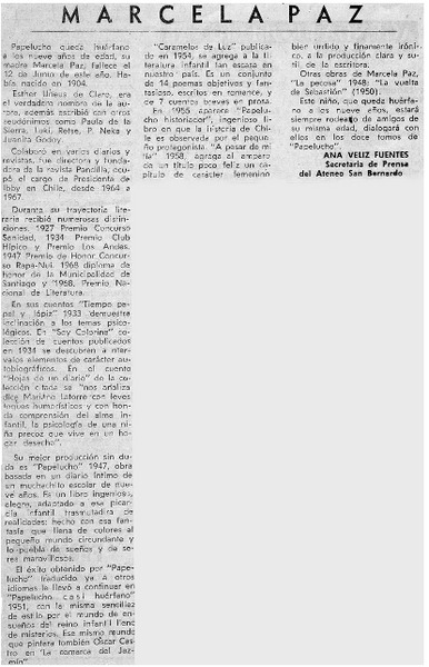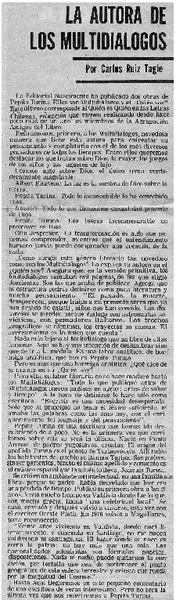 Academia chilena premió obra de María L. Bombal. [artículo]
