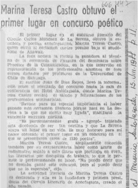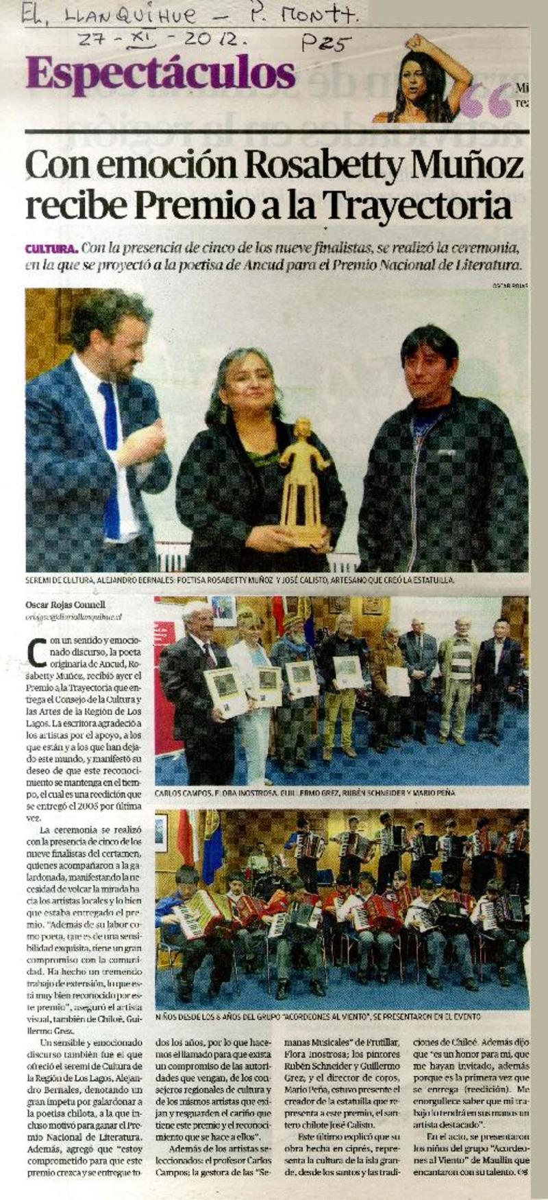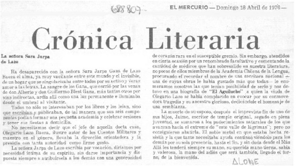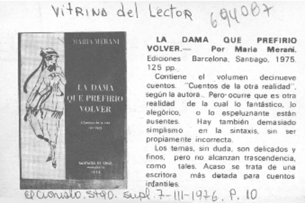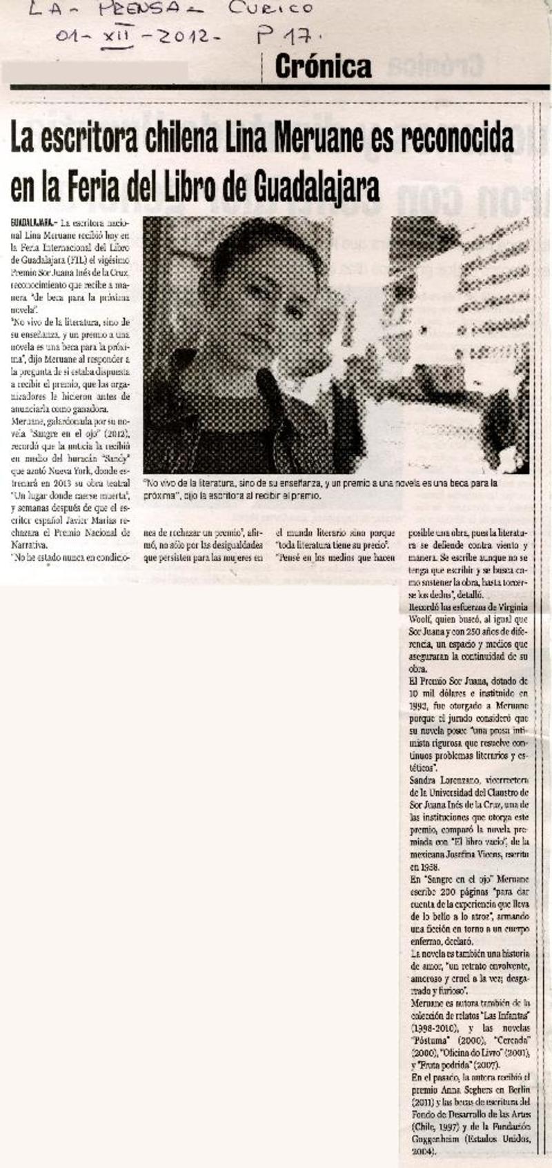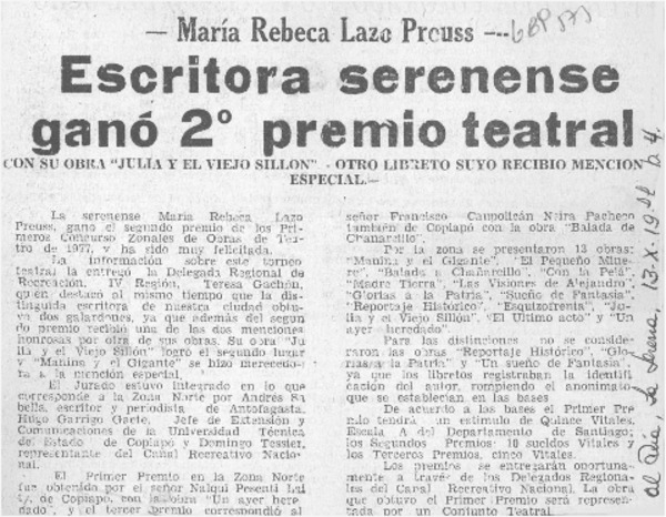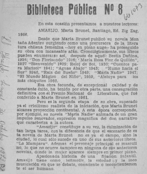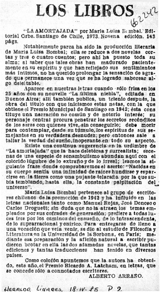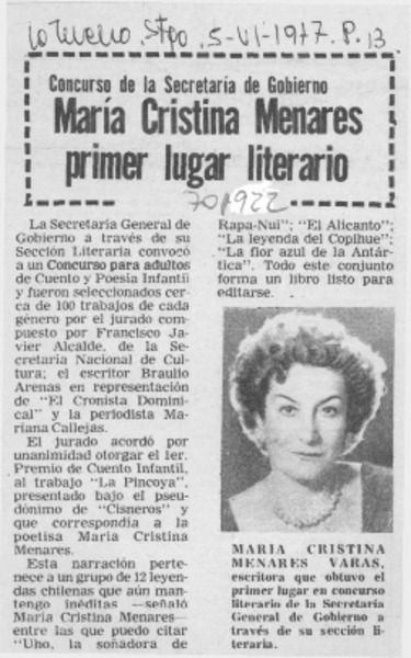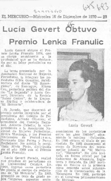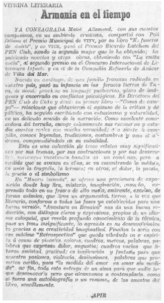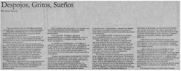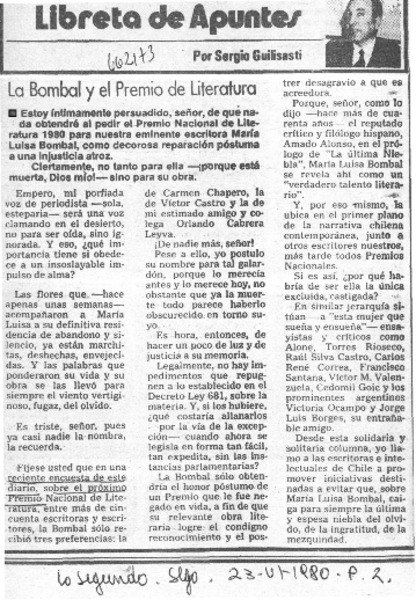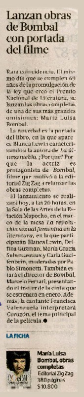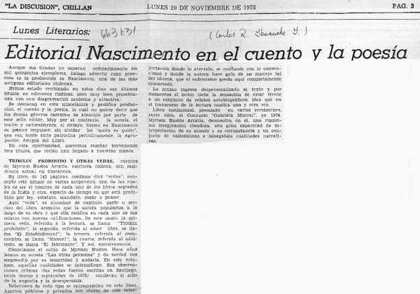 Academia chilena premió obra de María L. Bombal. [artículo]