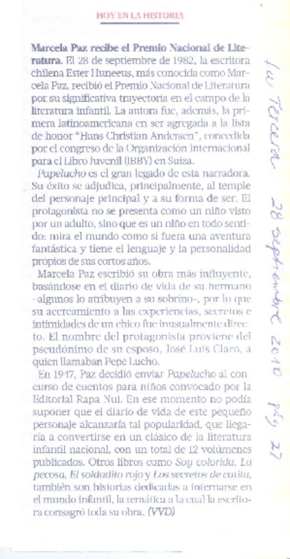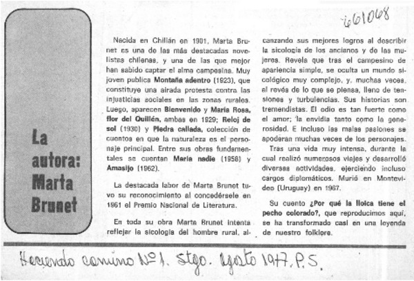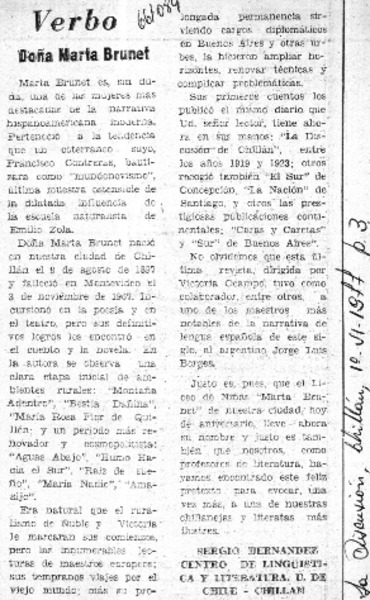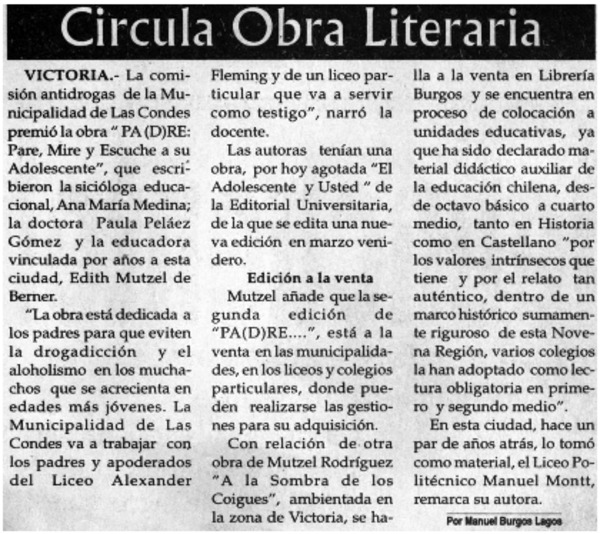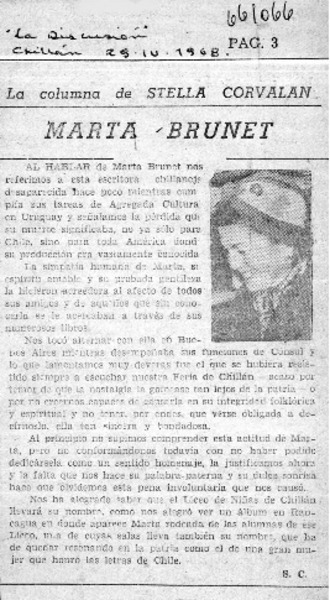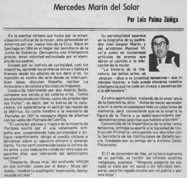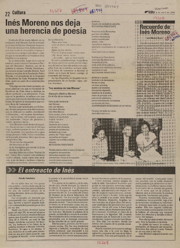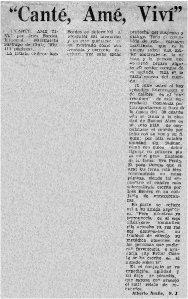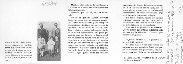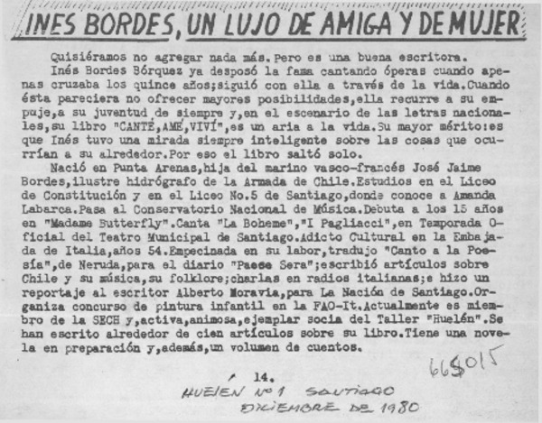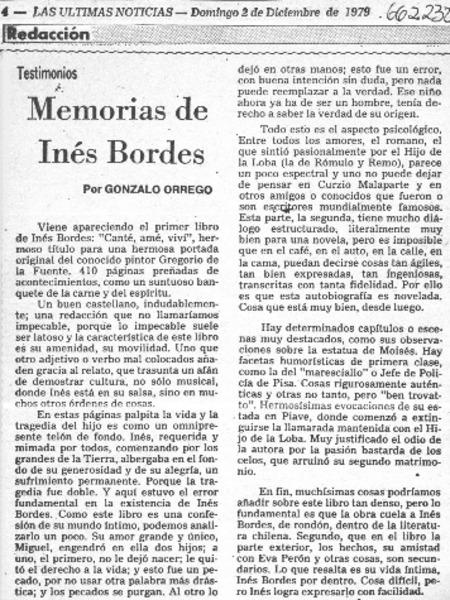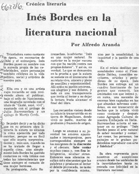 Adiós a Inés Bordes [artículo] Marino Muñoz Lagos.
