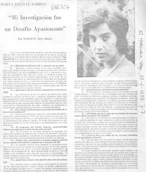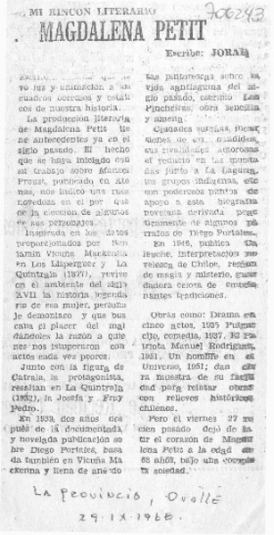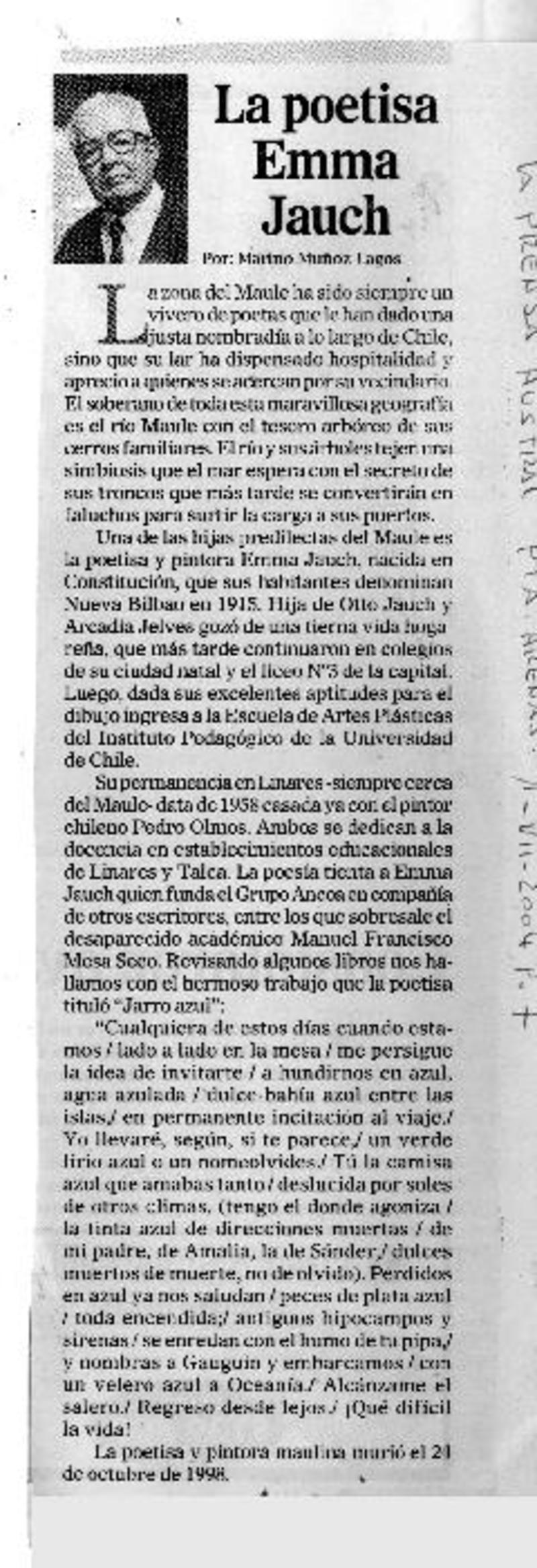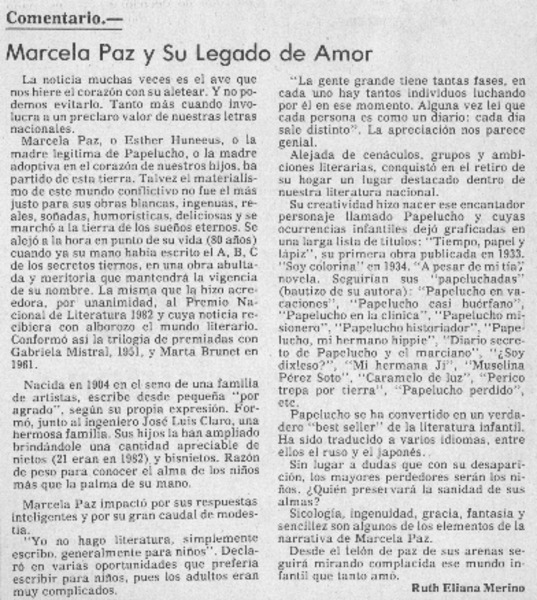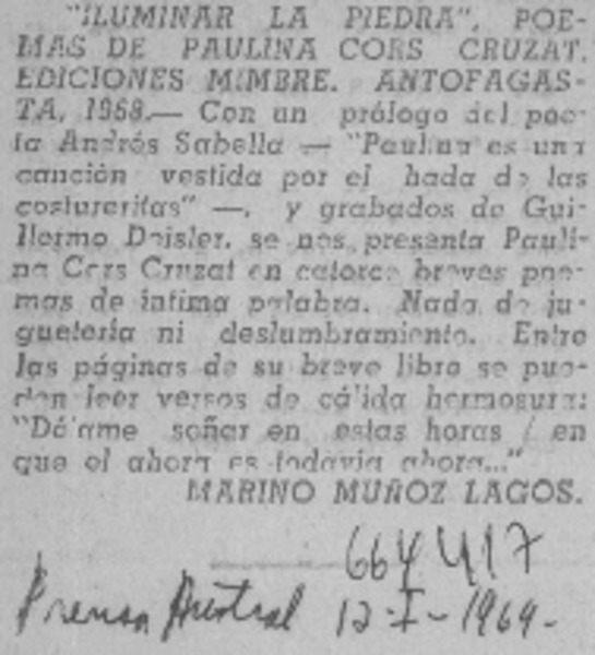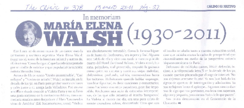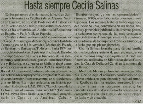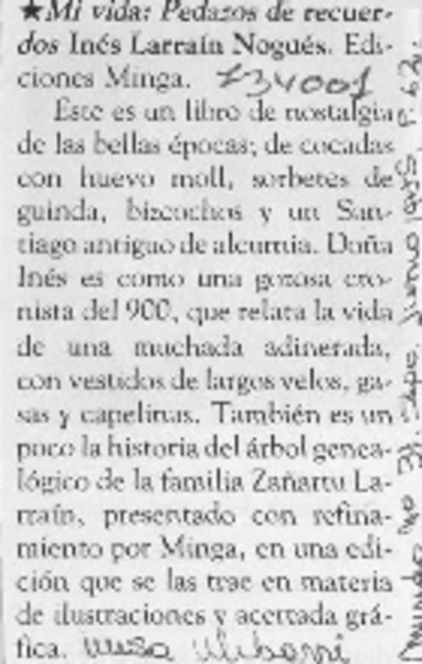 Adiós a Inés Bordes [artículo] Marino Muñoz Lagos.