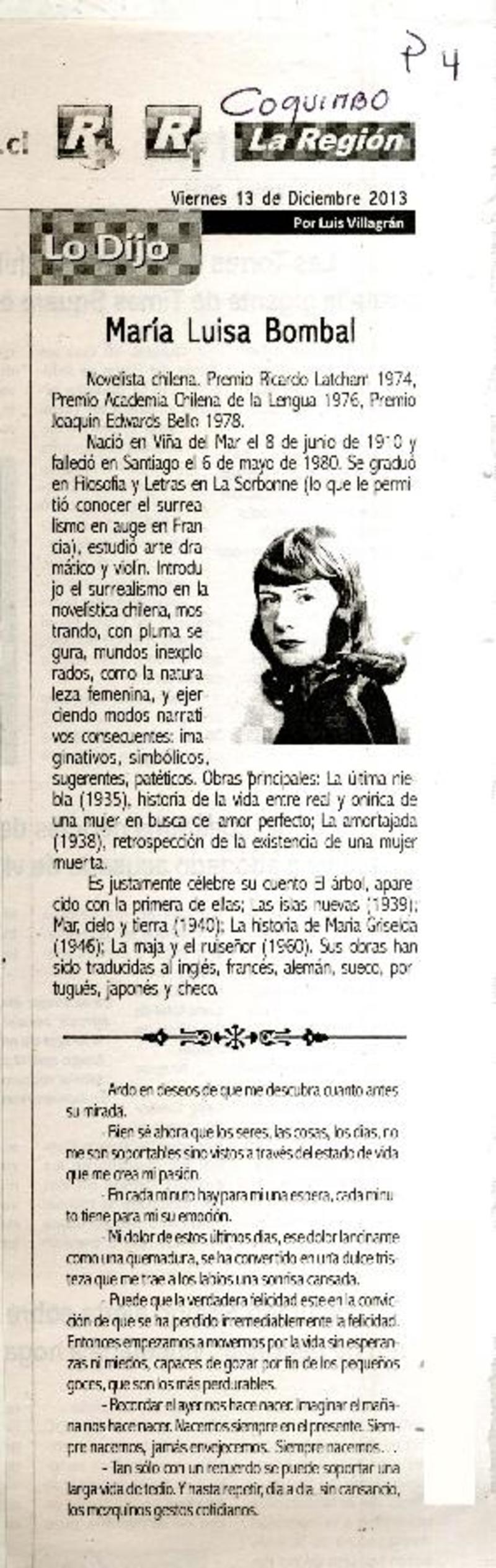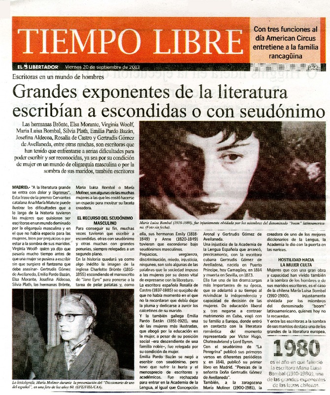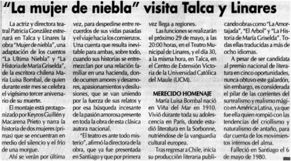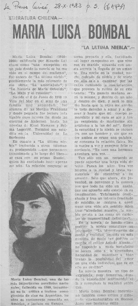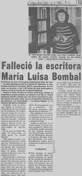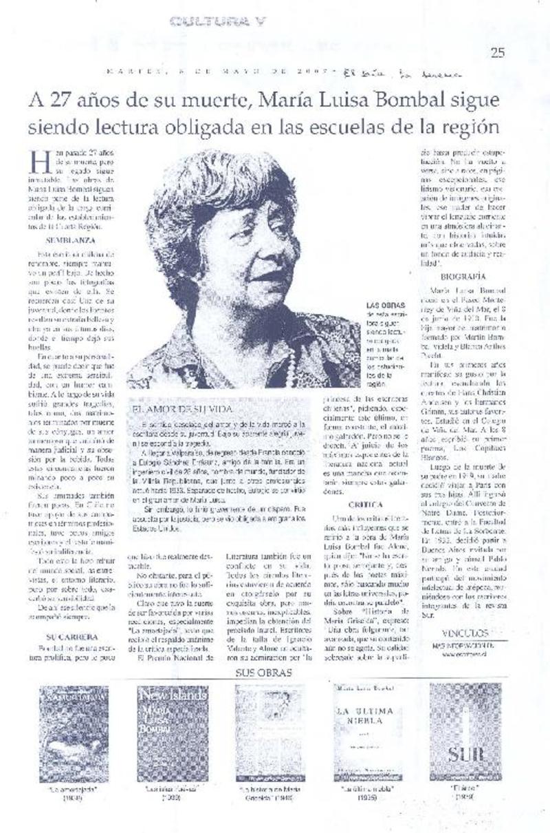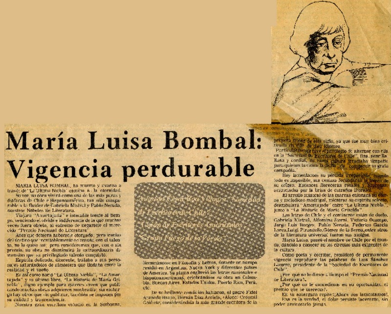 A 27 años de su muerte, María Luis Bombal sigue siendo lectura obligada en las escuelas de la región [artículo].