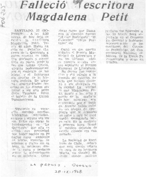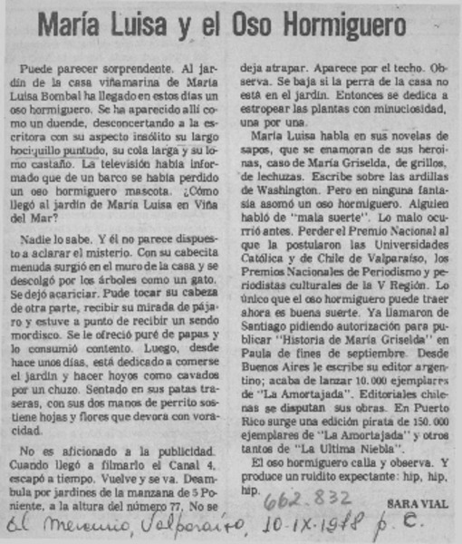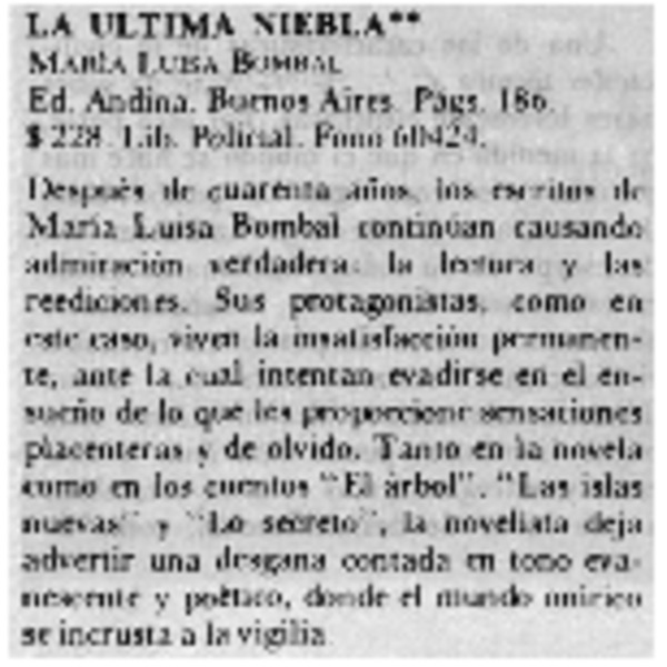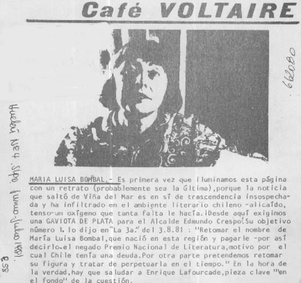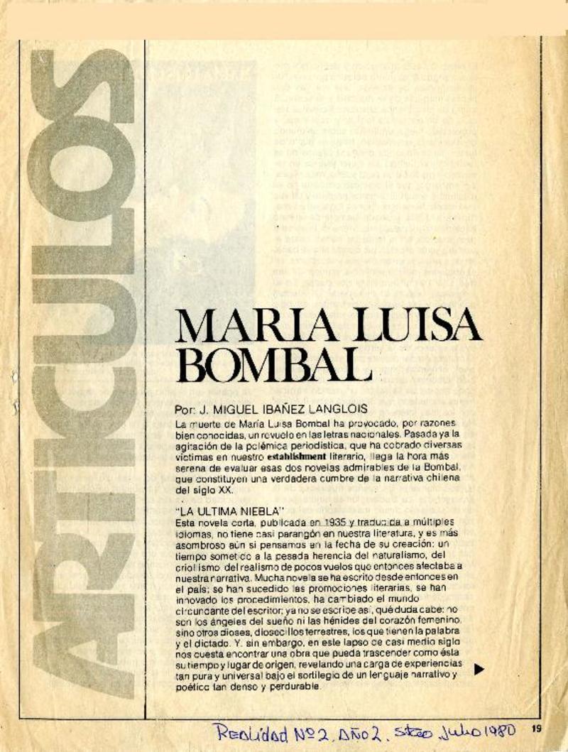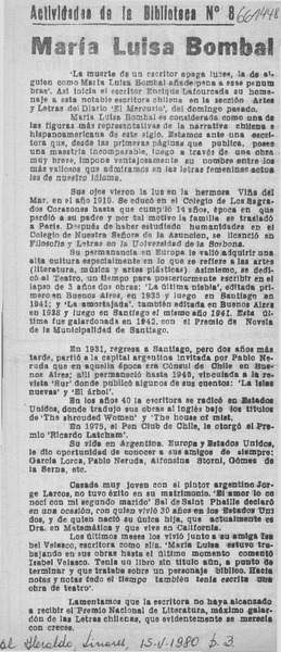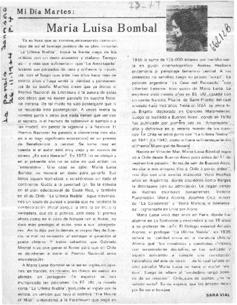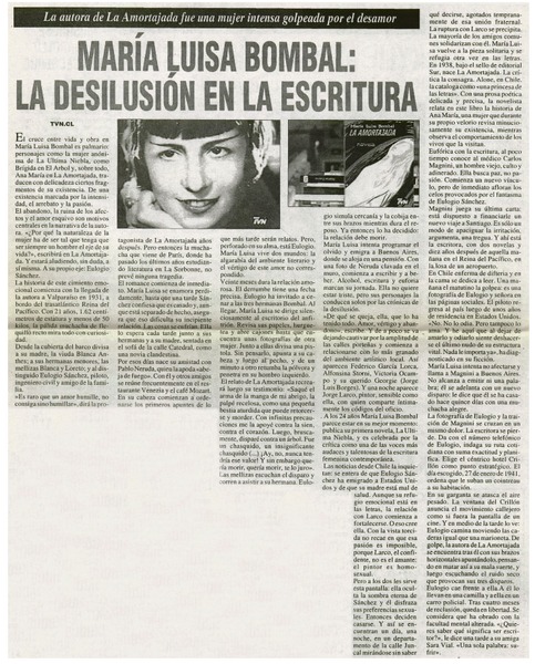 A 27 años de su muerte, María Luis Bombal sigue siendo lectura obligada en las escuelas de la región [artículo].