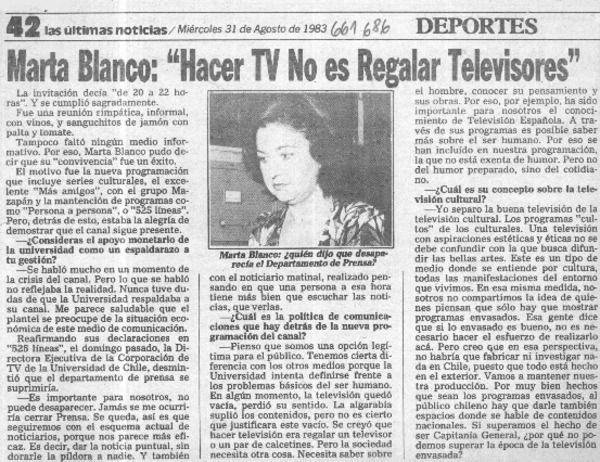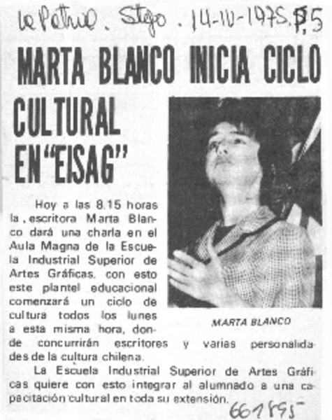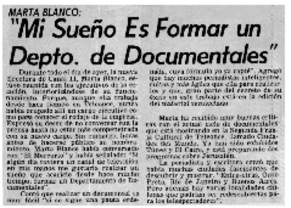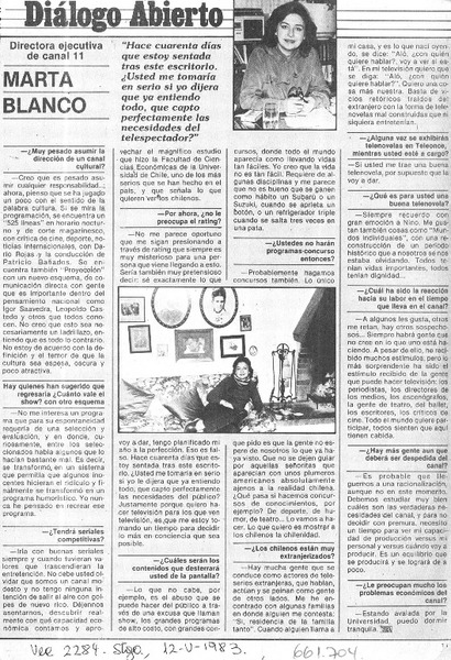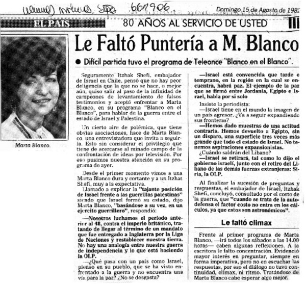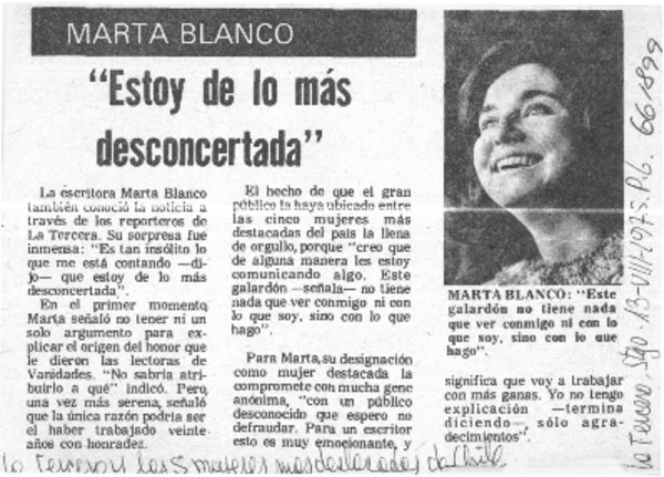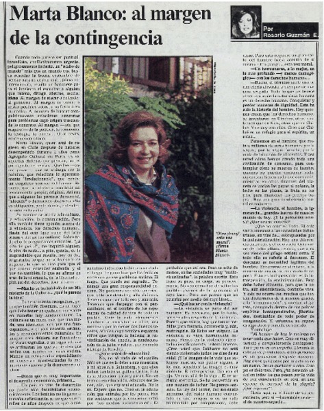 Agudeza y humor Marta Blanco, pensante y valiente responde sin preambulos ni sutilezas, en su estilo, a todo cuanto se le pregunta [artículo] : Rosario Guzmán Errazuriz.