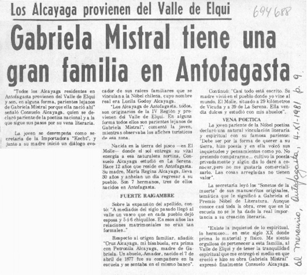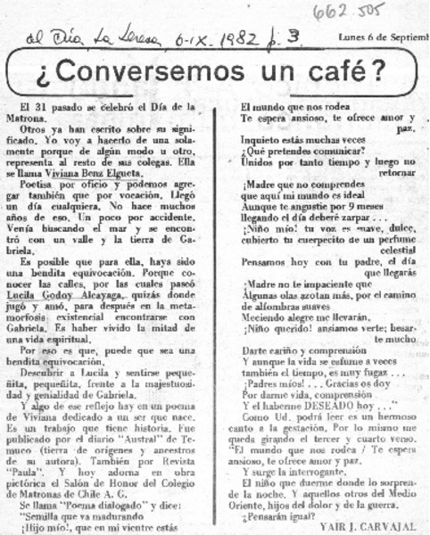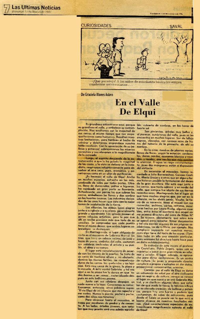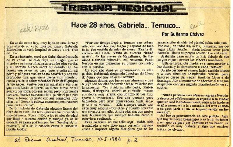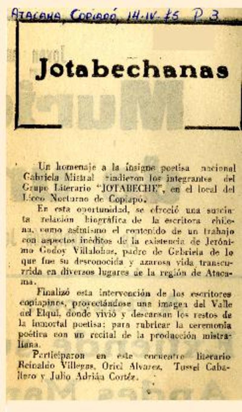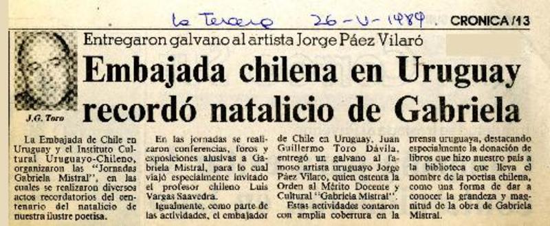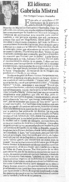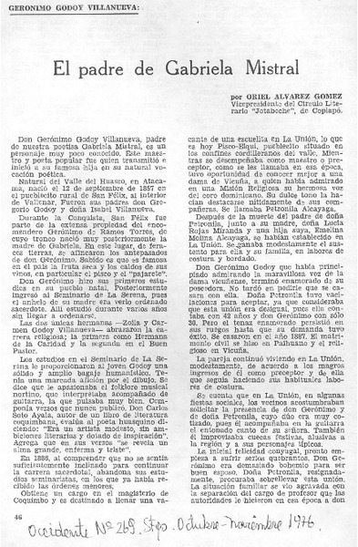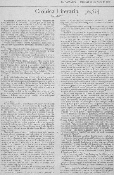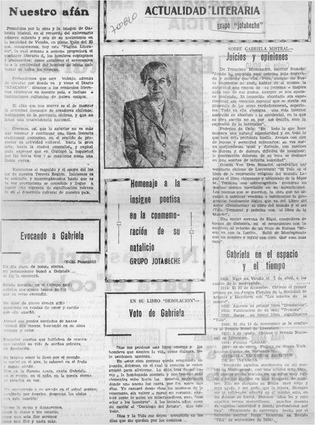 Natalicio de Gabriela Mistral [artículo] Alfredo Galaz JIménez.