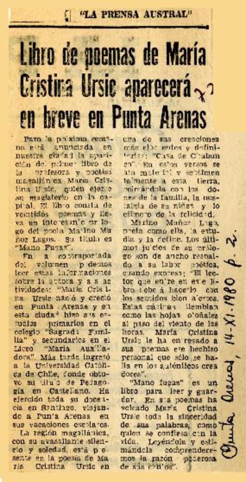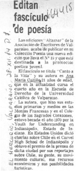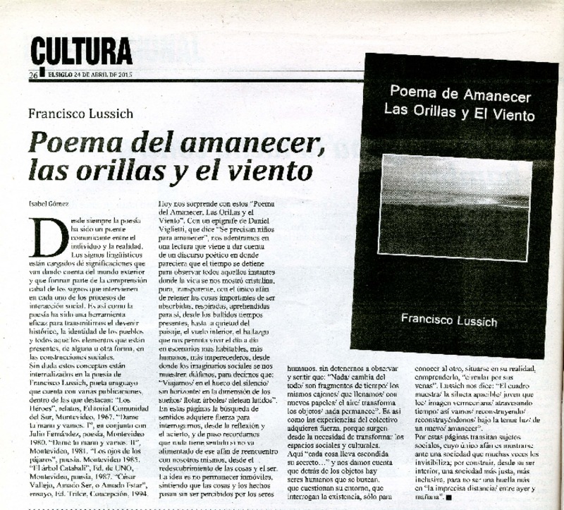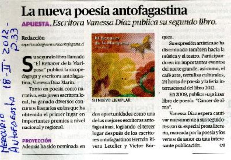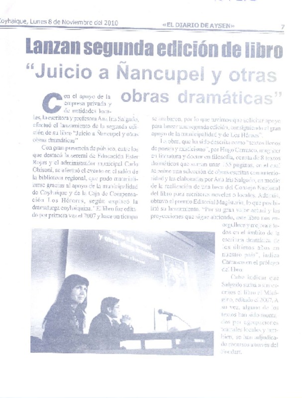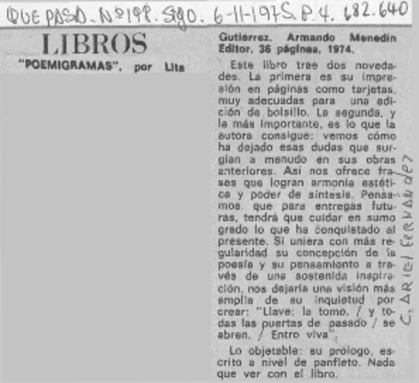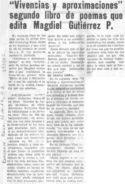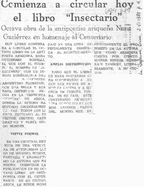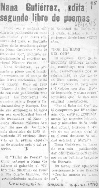 Nana Gutiérrez, edita segundo libro de poemas. [artículo]
