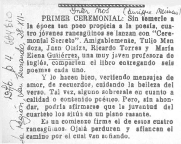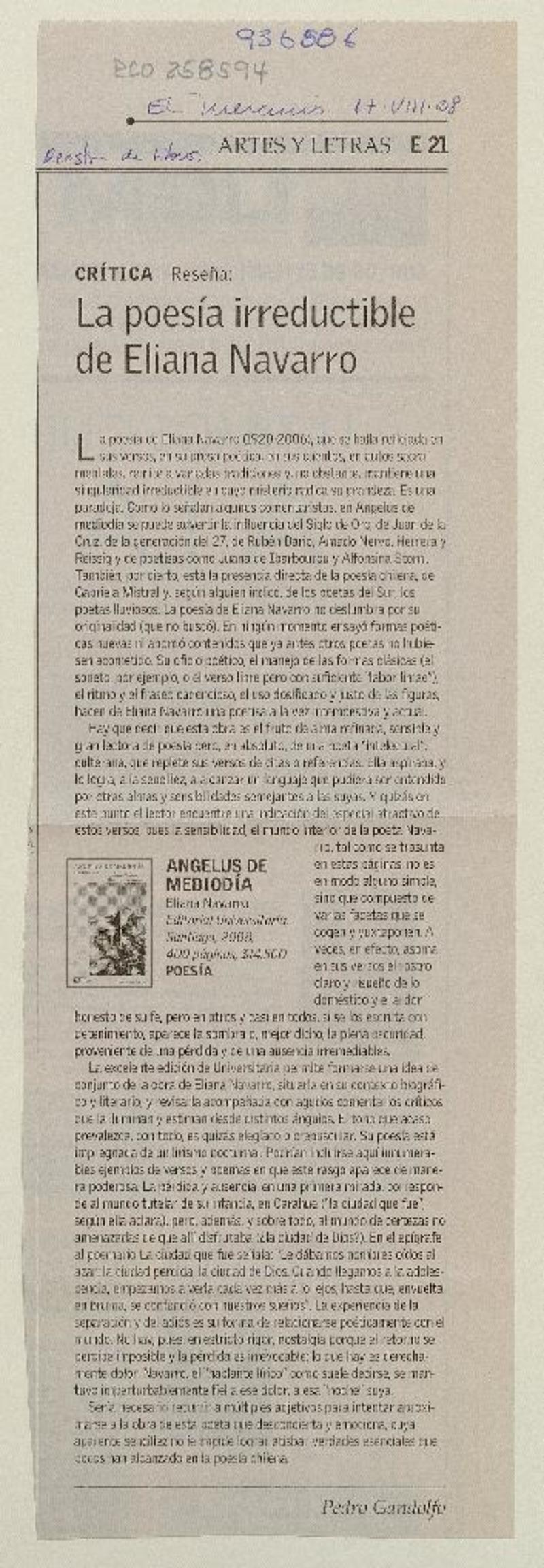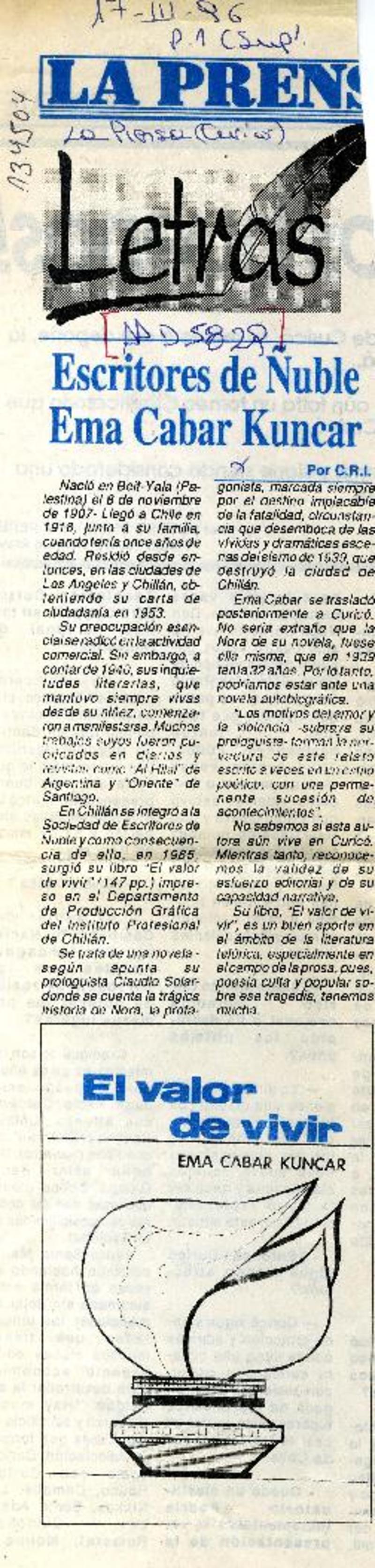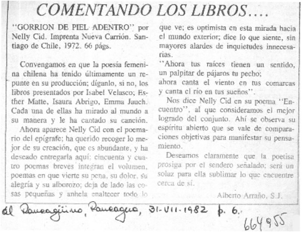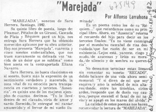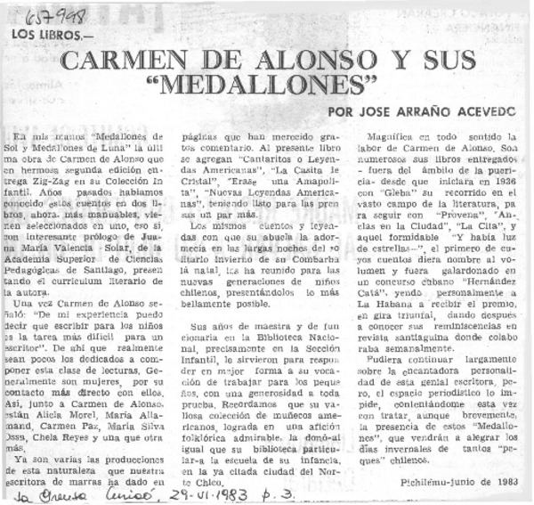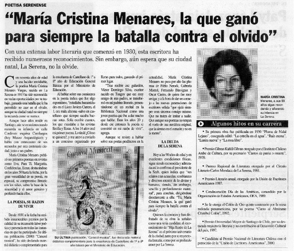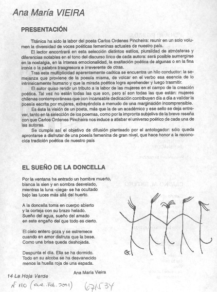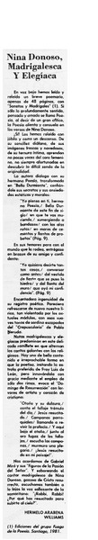 Nina Donoso, madrigales y elegíaca [artículo] Hermelo Arabena Williams.